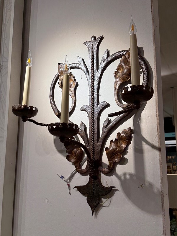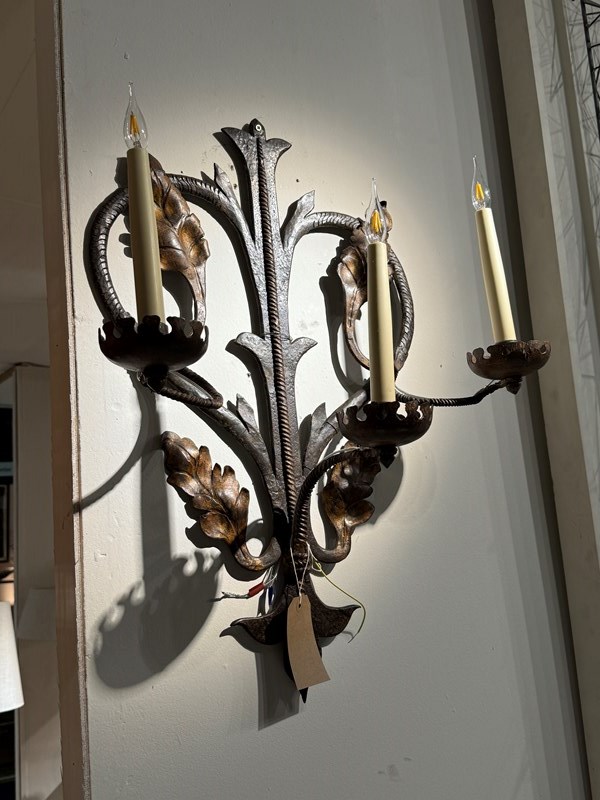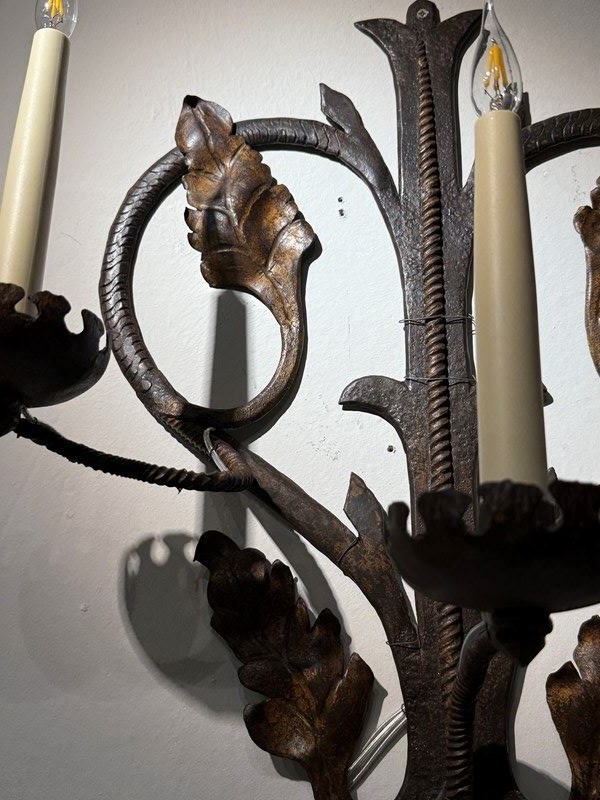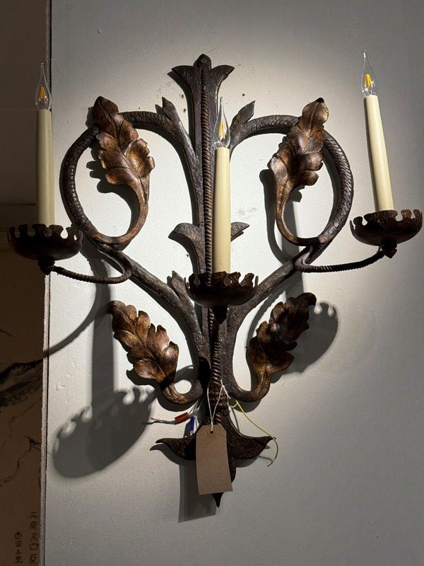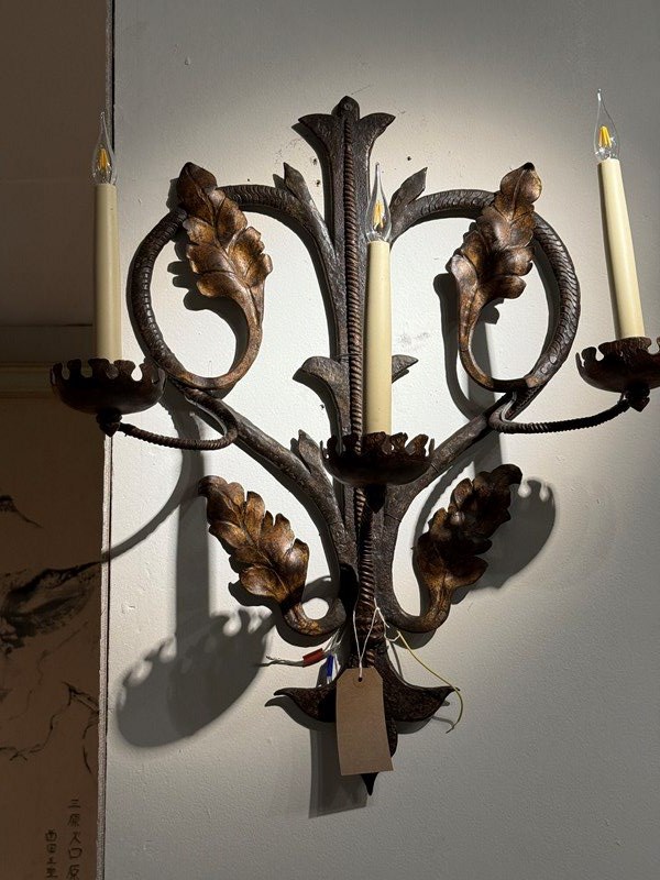 C1950 A Pair of Large French Iron Gilt Wall Sconces