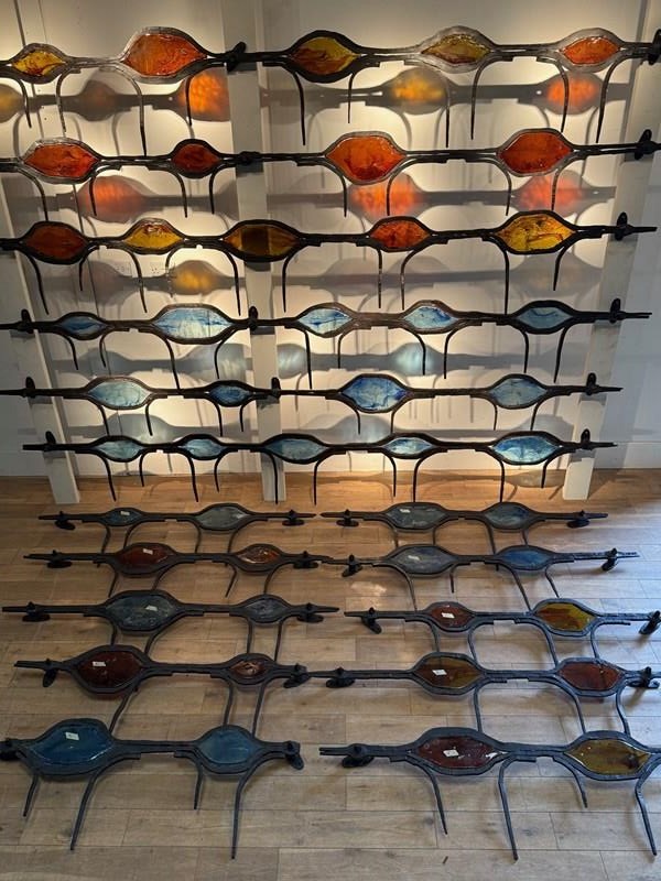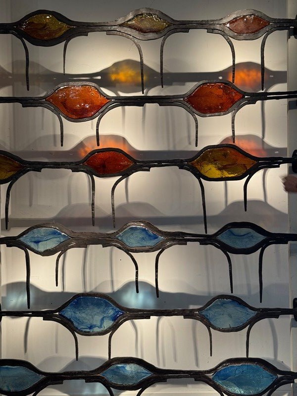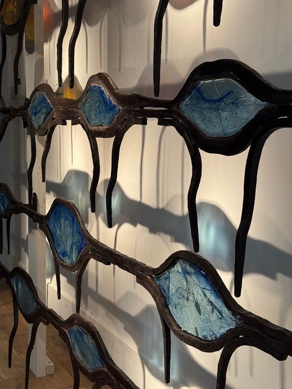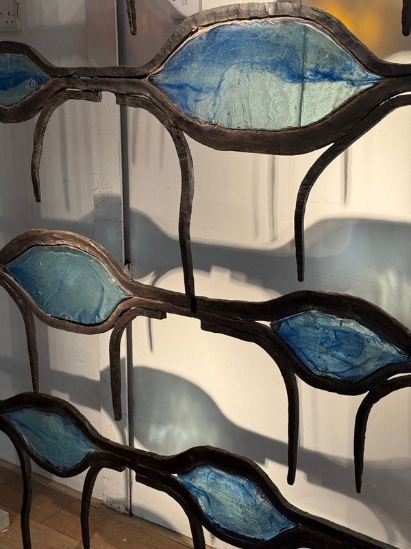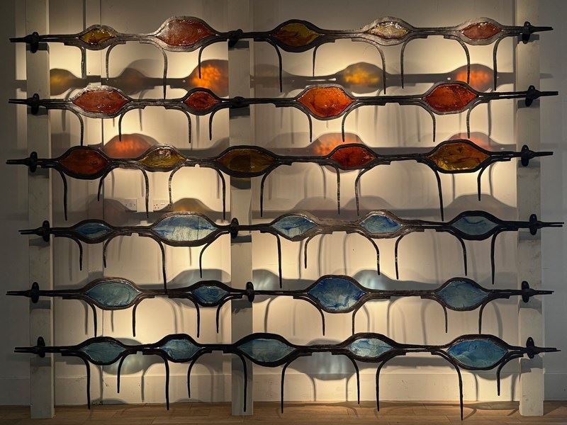 C1950 An Artisan Spanish Brutalist Iron & Glass Wall Sculpture.