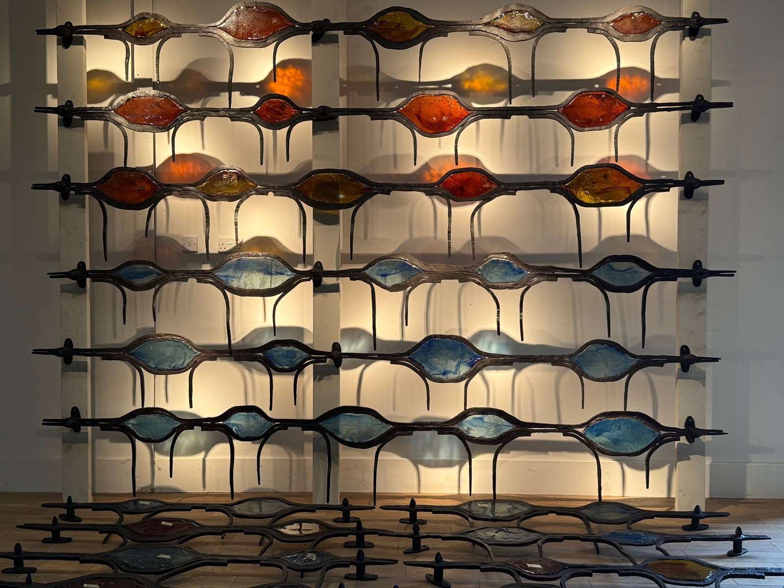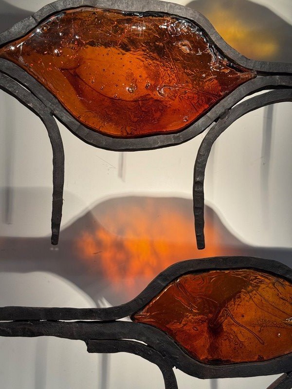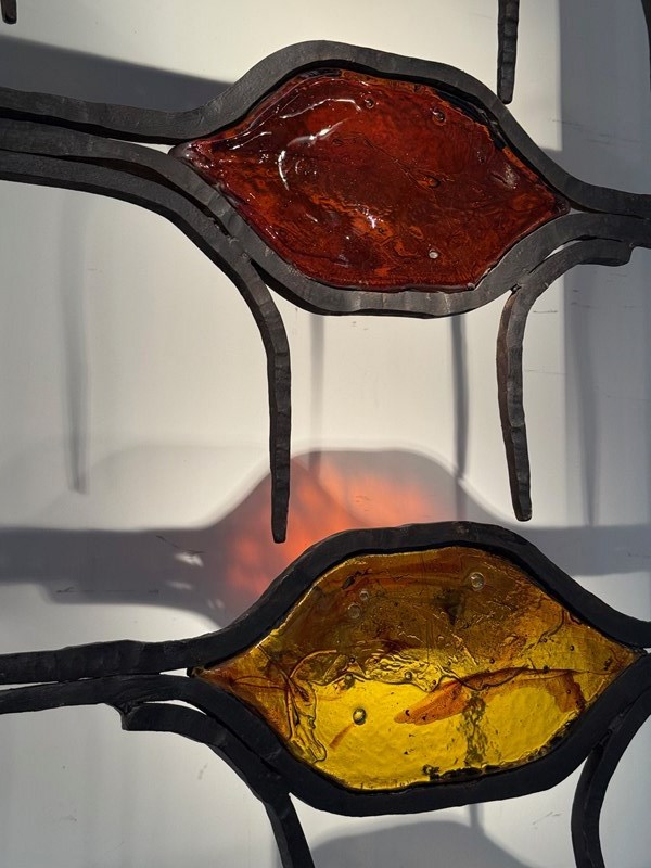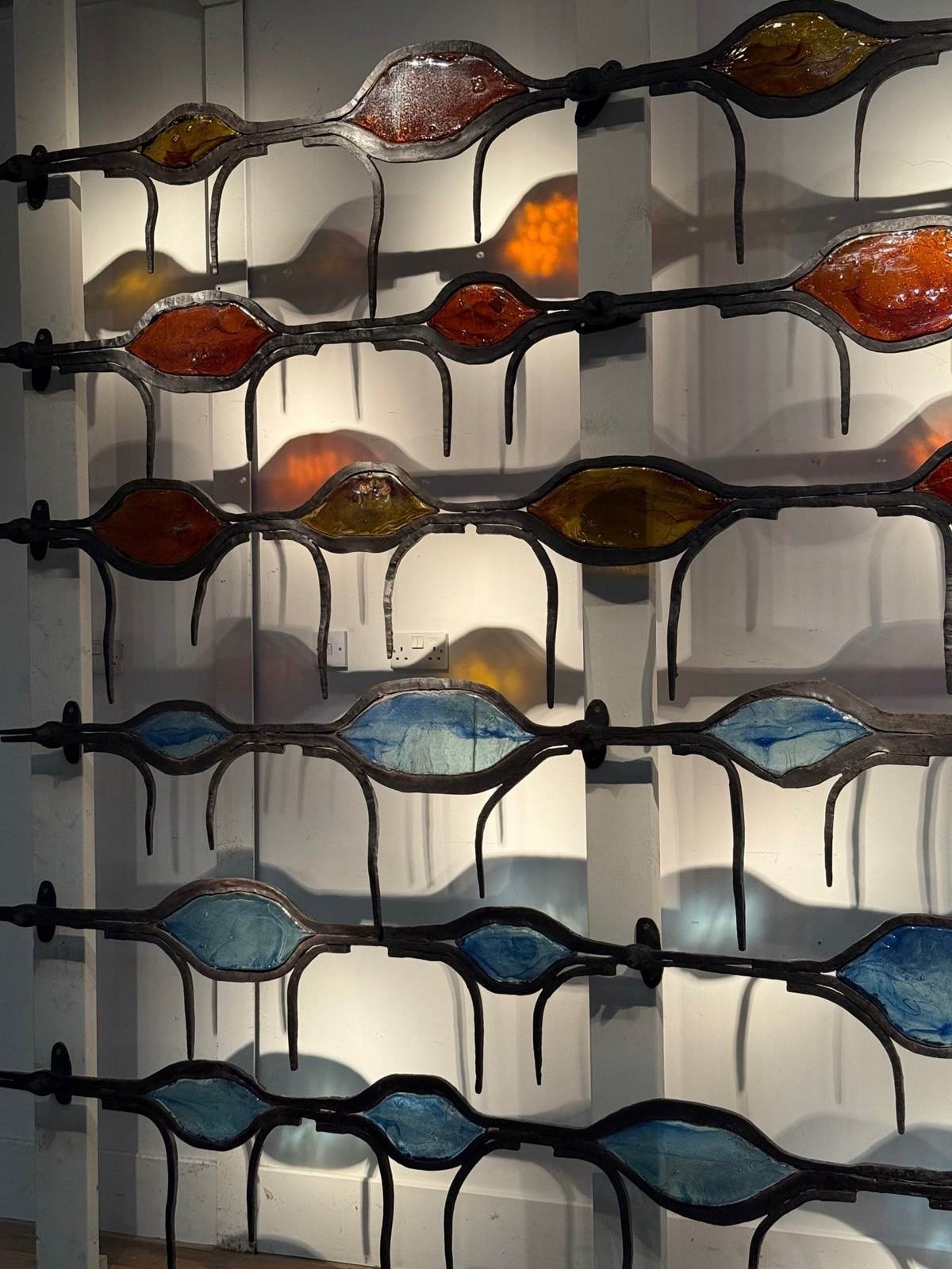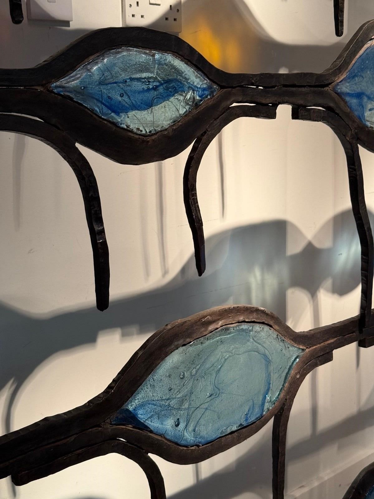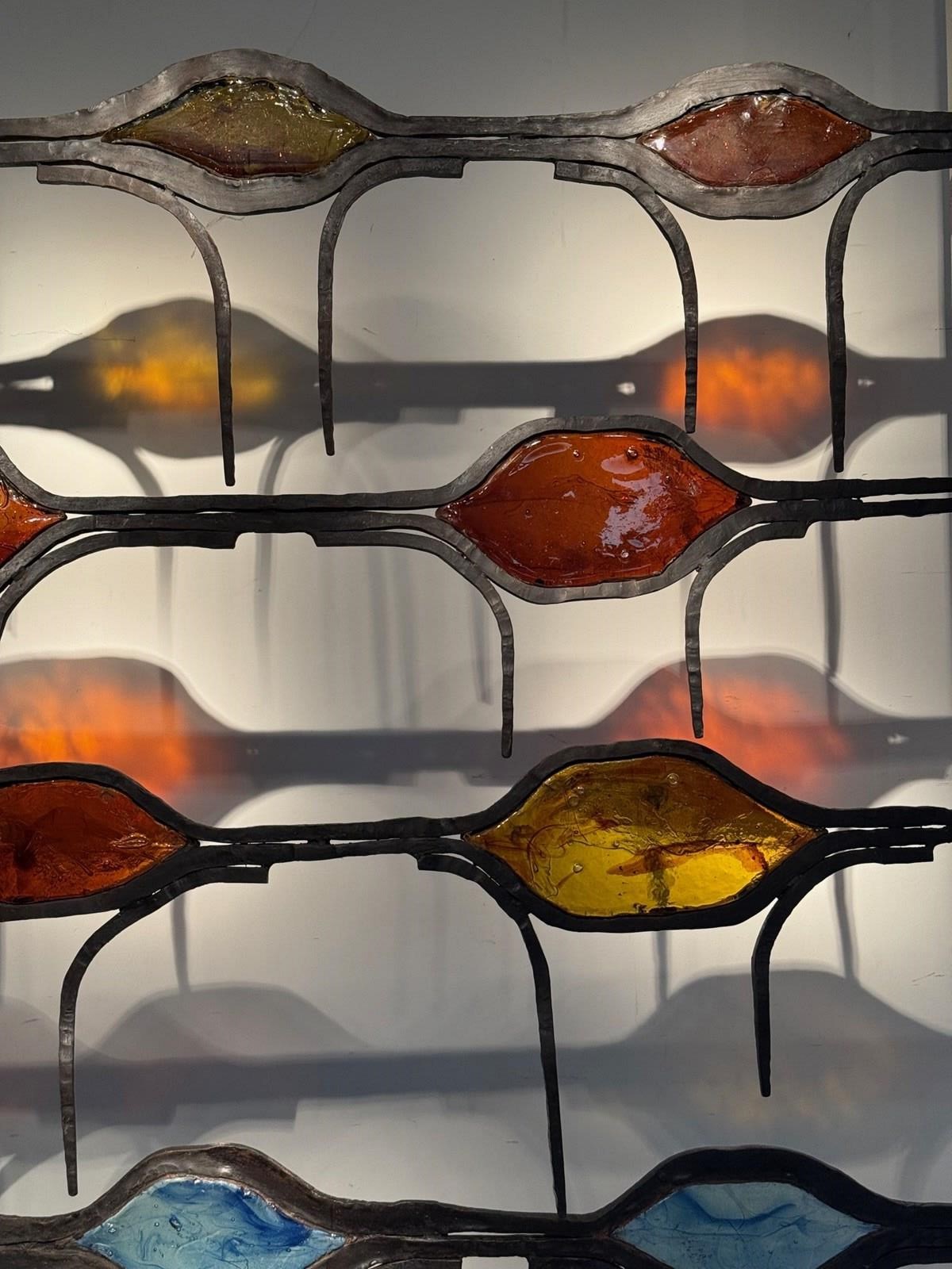 C1950 An Artisan Spanish Brutalist Iron & Glass Wall Sculpture