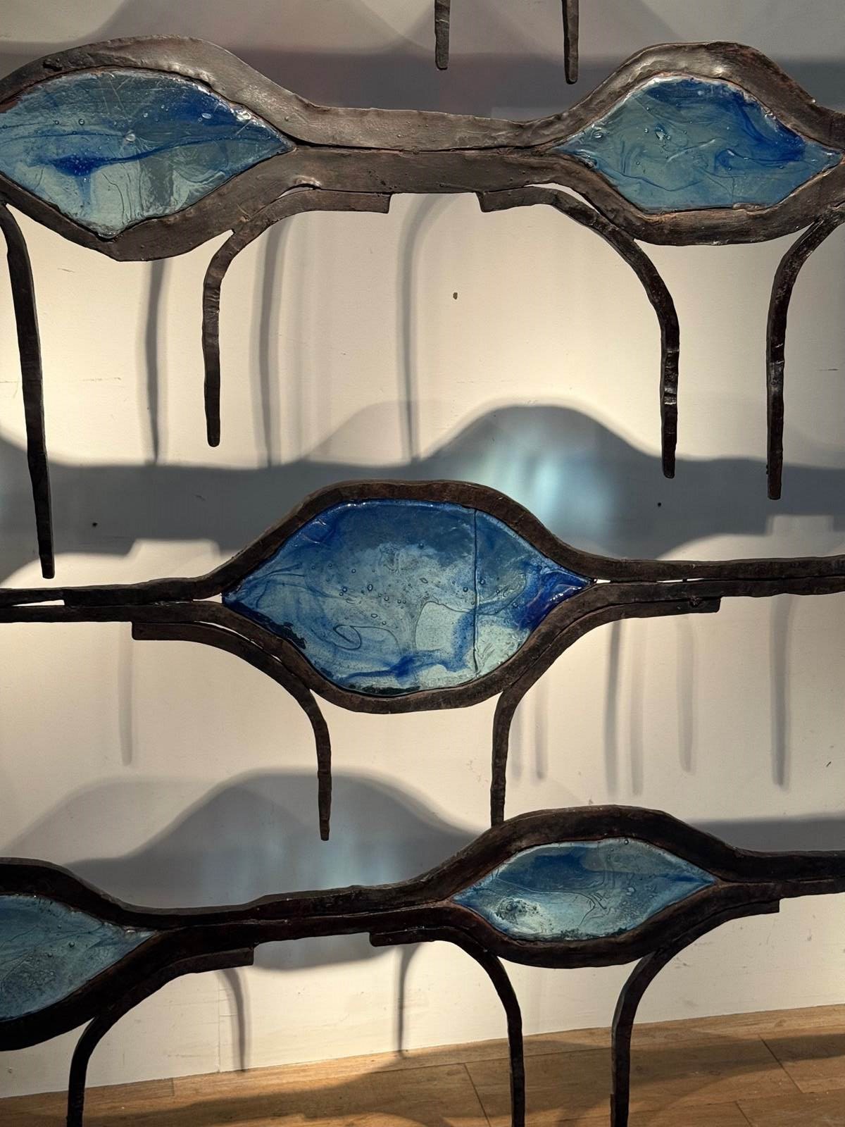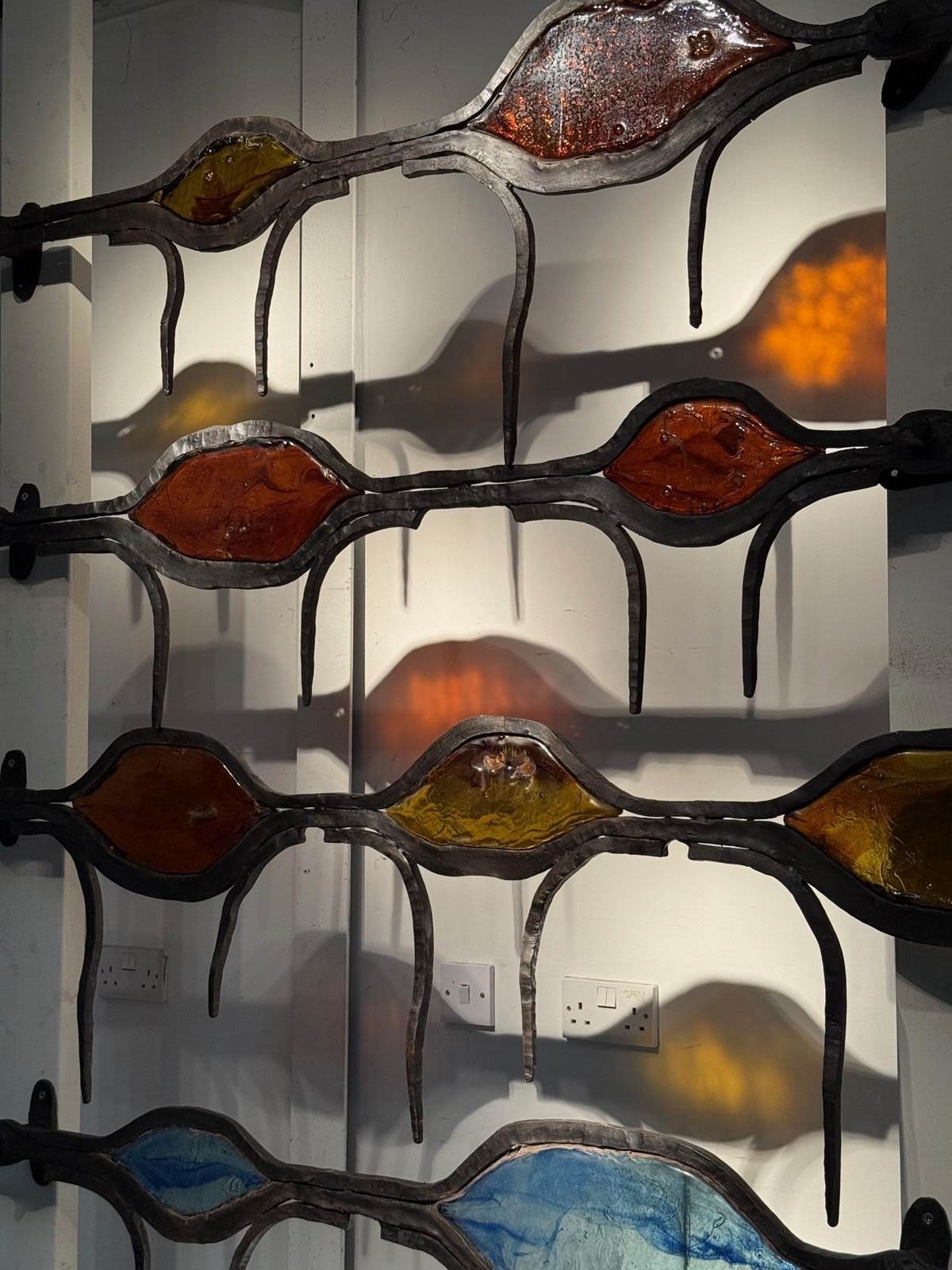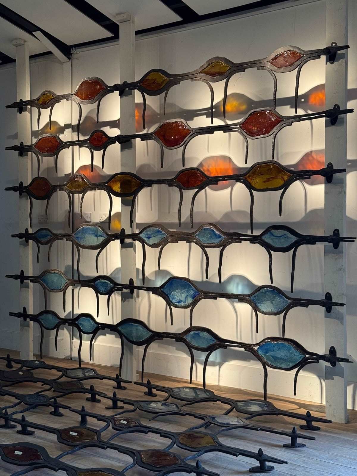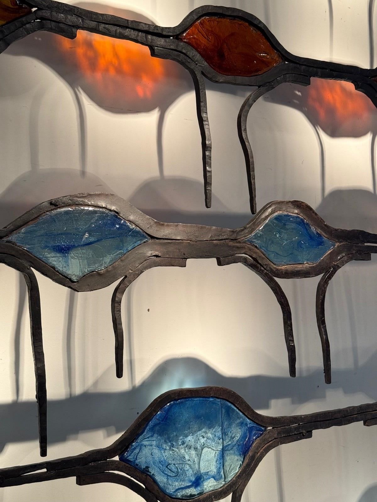C1950 An Artisan Spanish Brutalist Iron & Glass Wall Sculpture