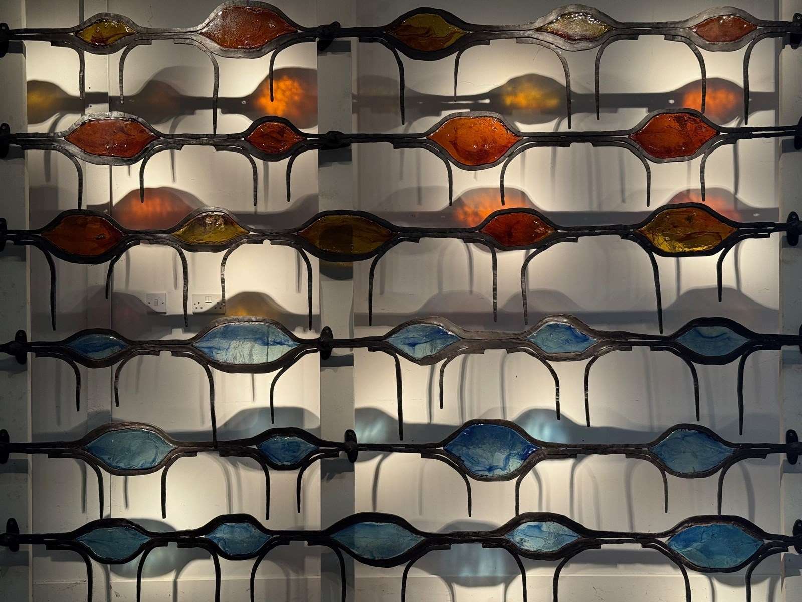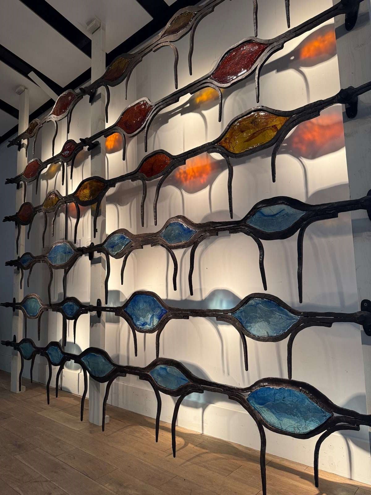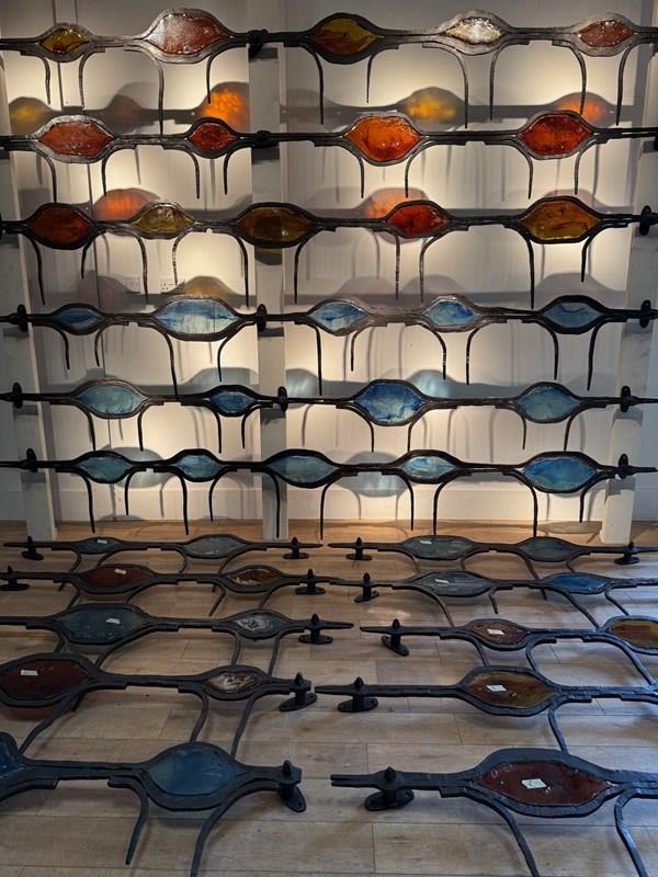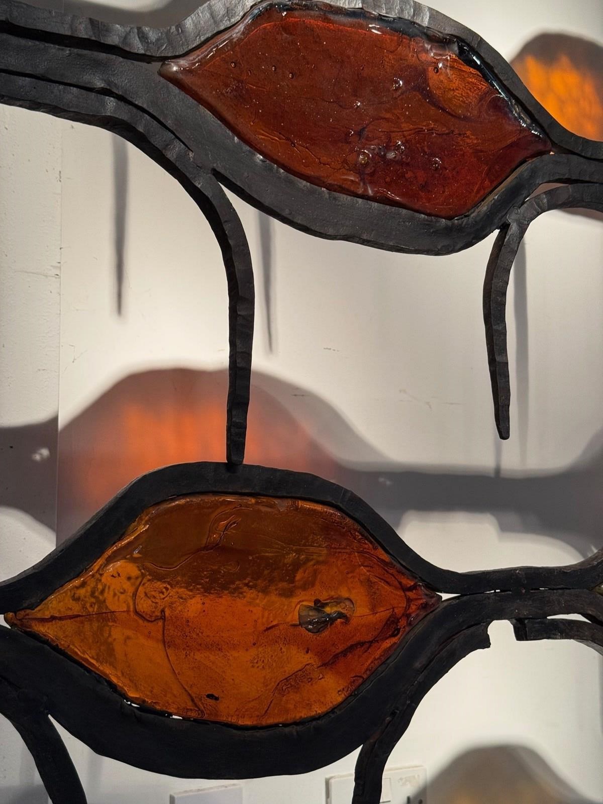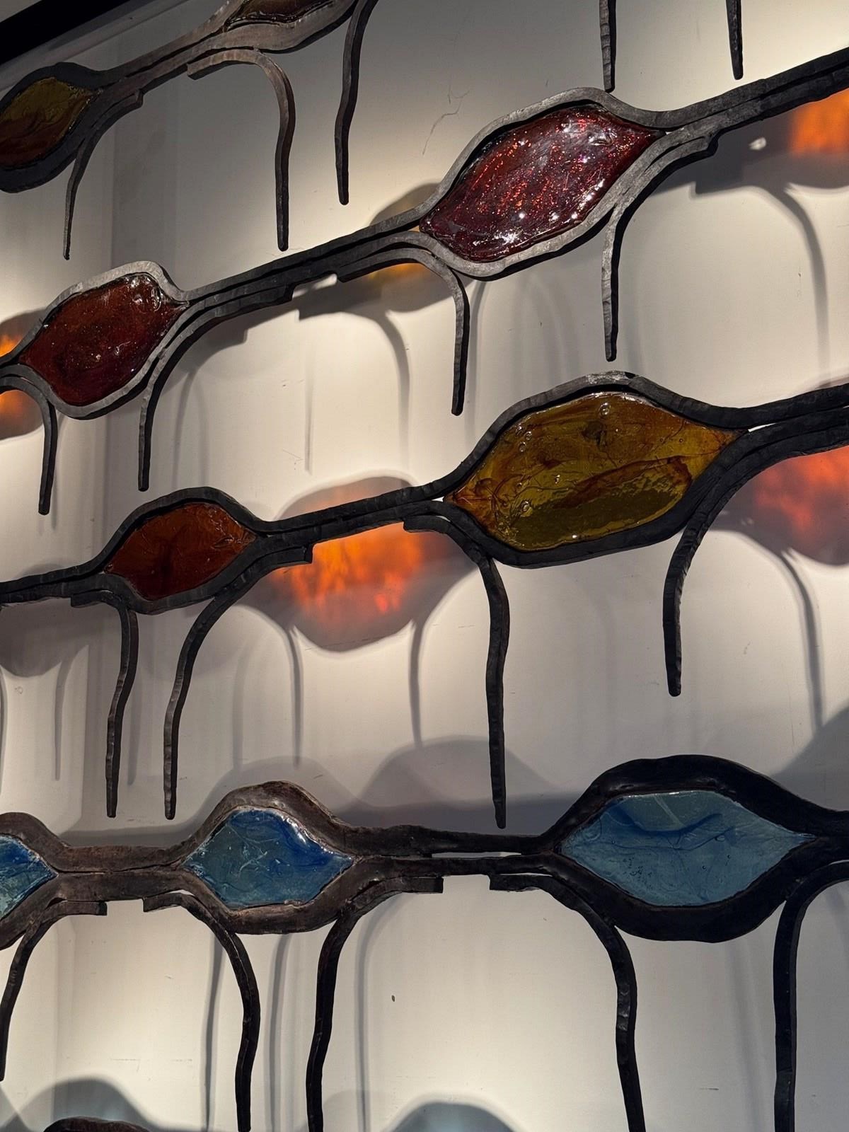 C1950 An Artisan Spanish Brutalist Iron & Glass Wall Sculpture