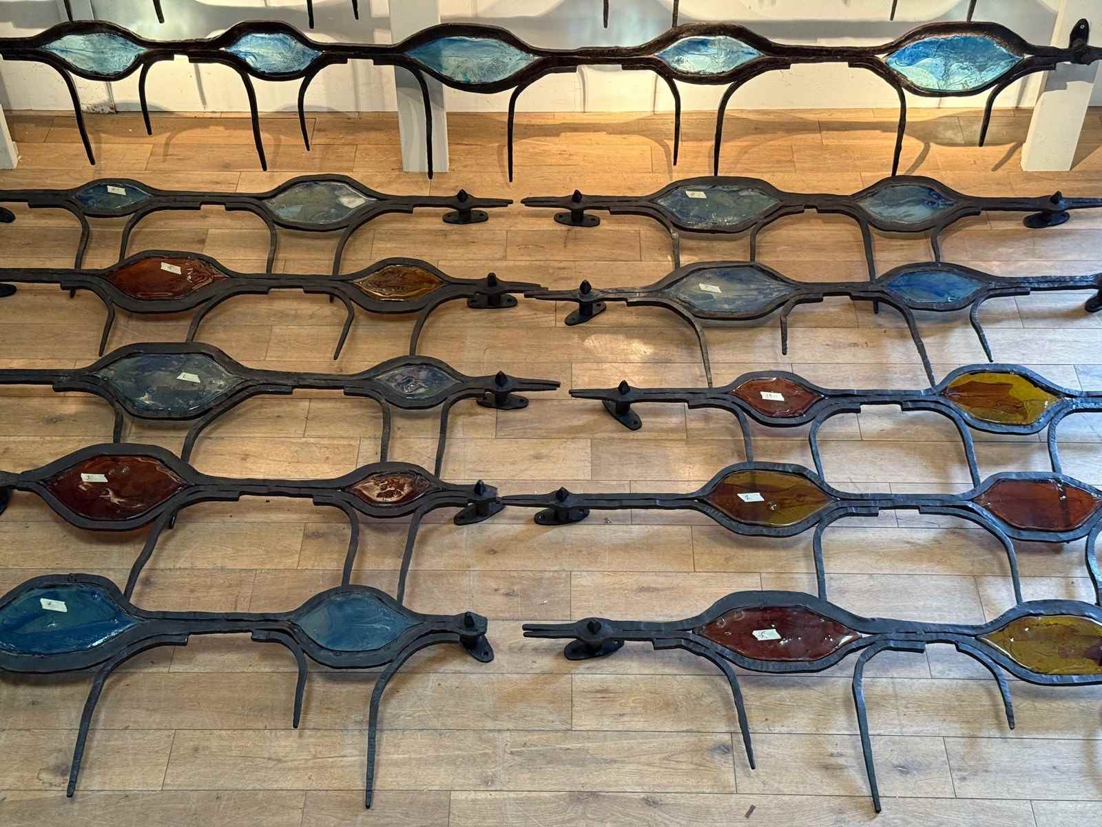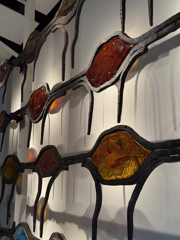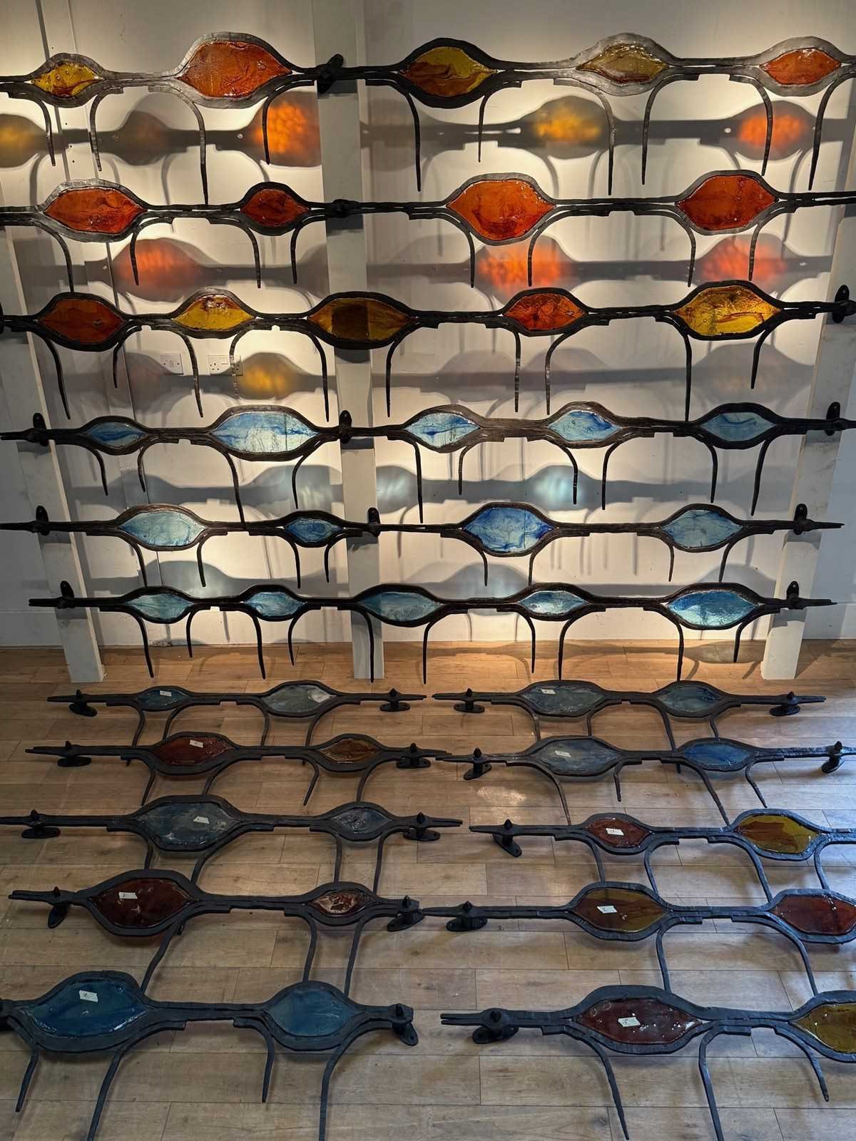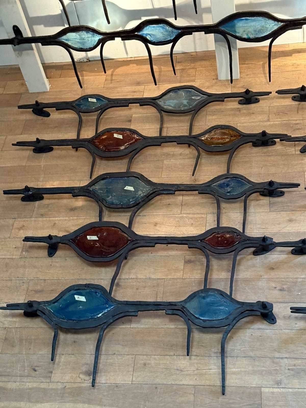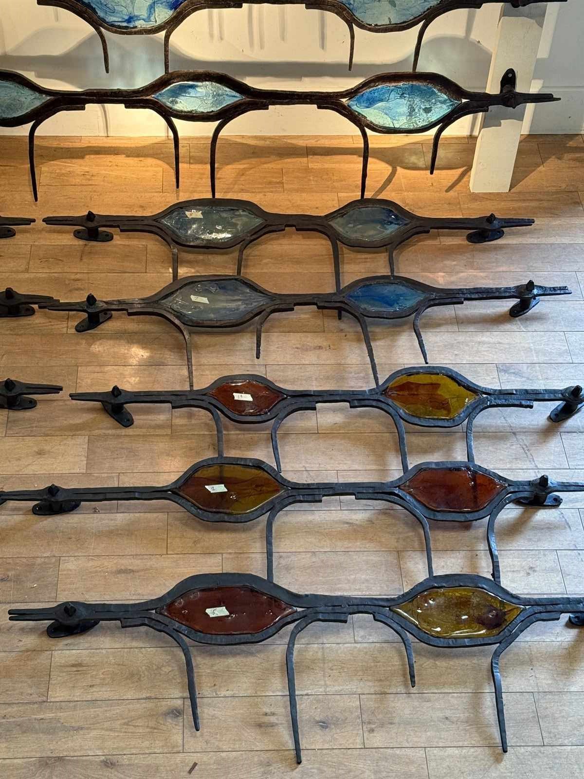 C1950 An Artisan Spanish Brutalist Iron & Glass Wall Sculpture
