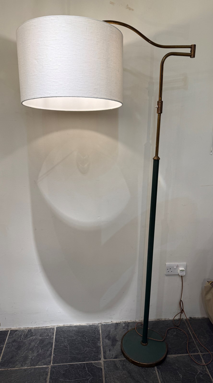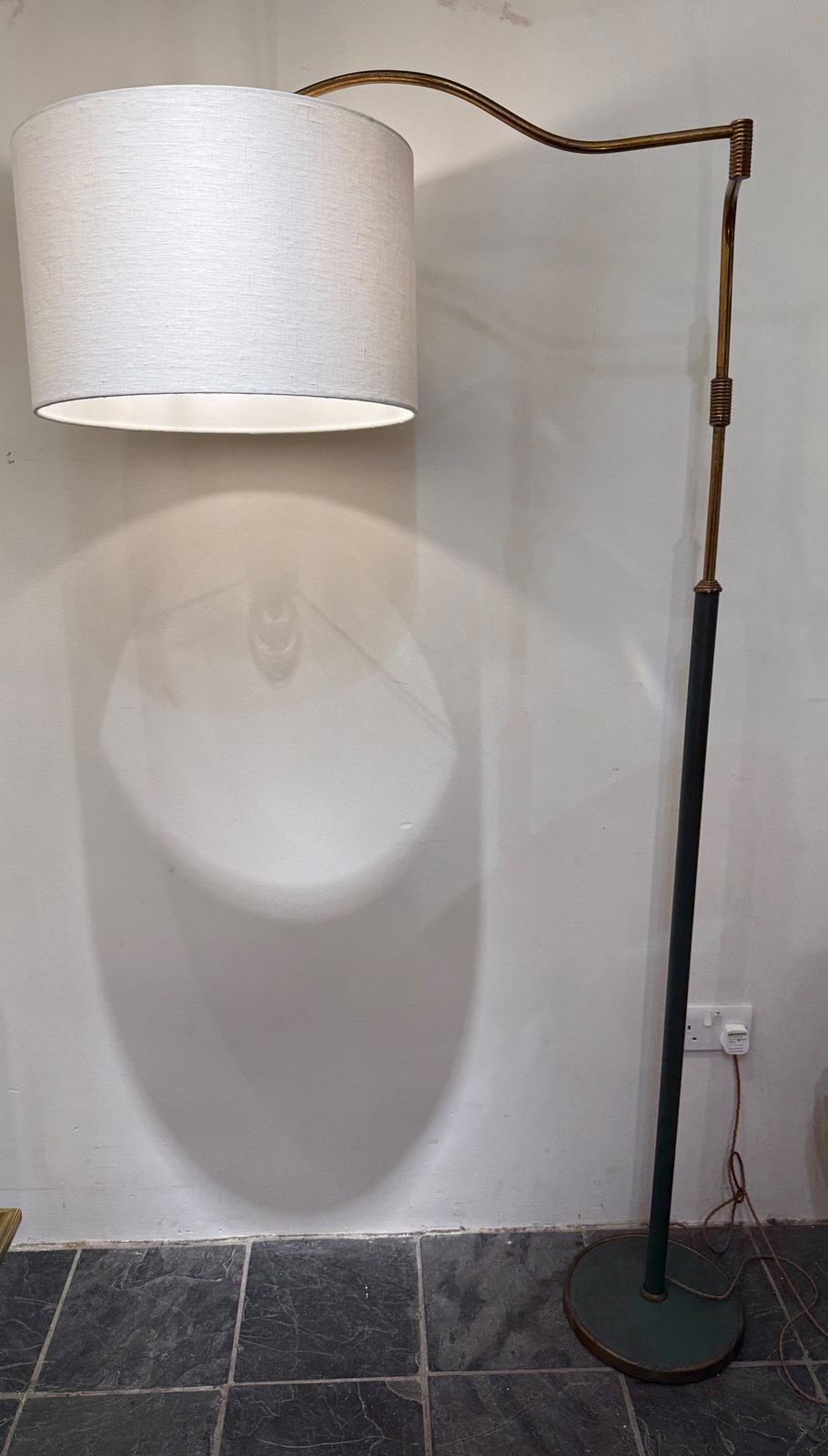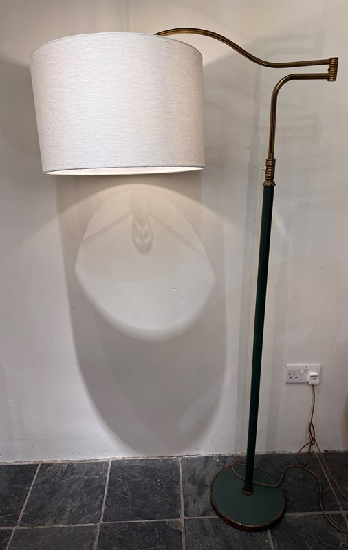 C1950 An Italian Telescopic Extendable Brass & Green Leather Floor Lamp - ideal above a chair, sofa or desk.