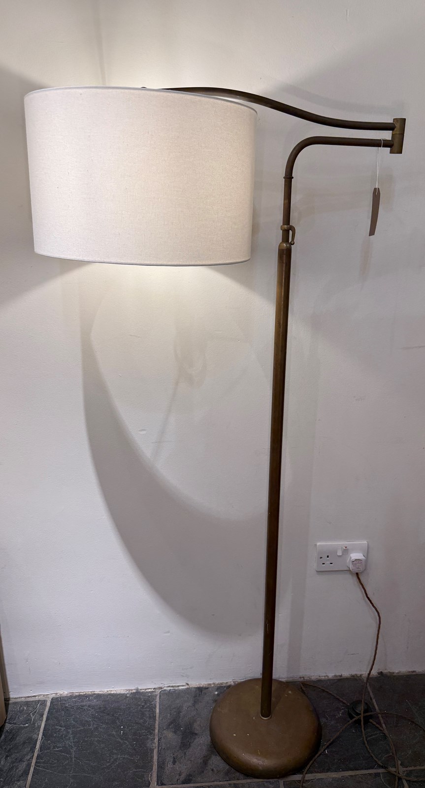 C1950 An Italian Telescopic Extendable Brass Floor Lamp - ideal above a chair, sofa or desk.
