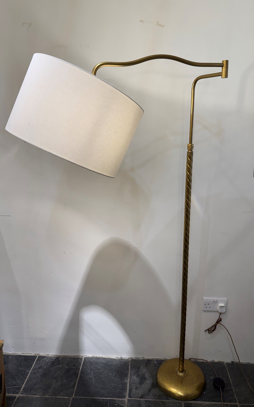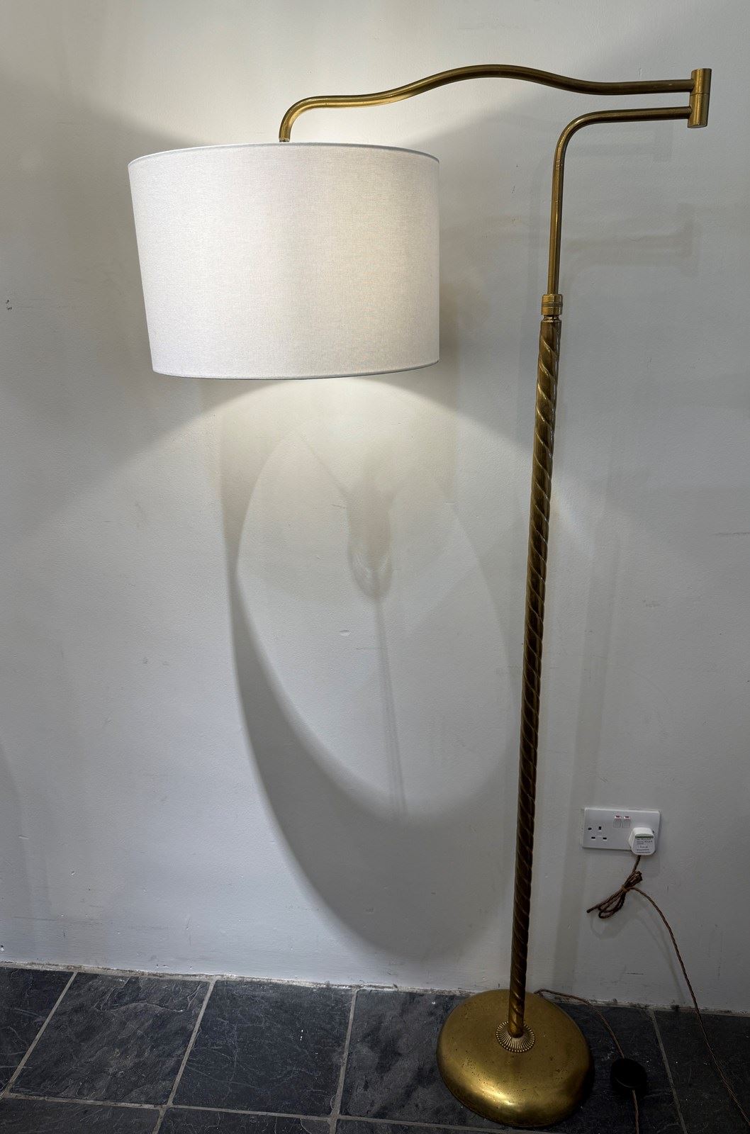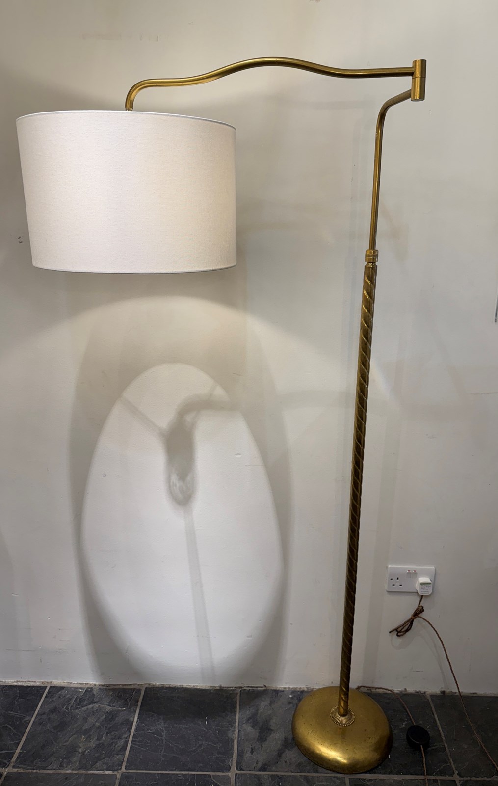 C1950 An Italian Telescopic Extendable Brass Twisted Floor Lamp - ideal above a chair, sofa or desk.