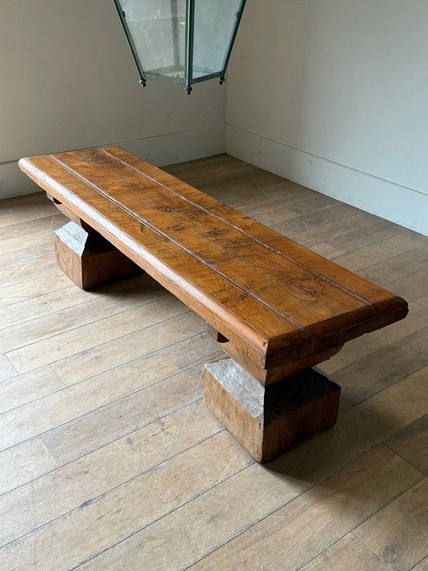C1960 A Cool Spanish Brutalist Oak Bench