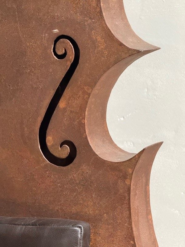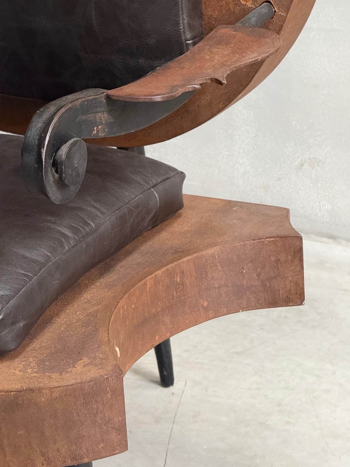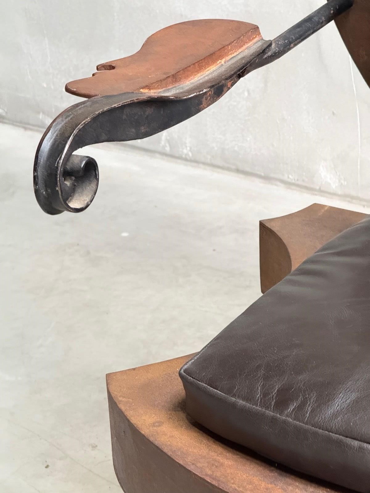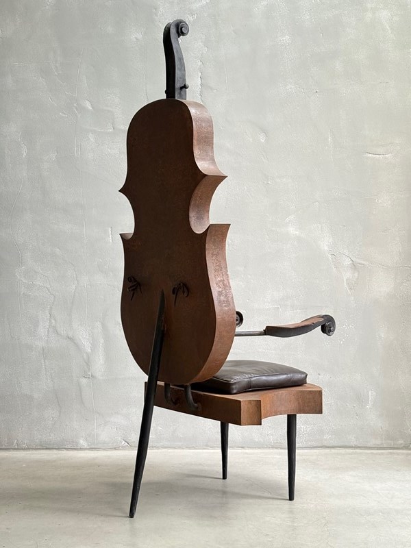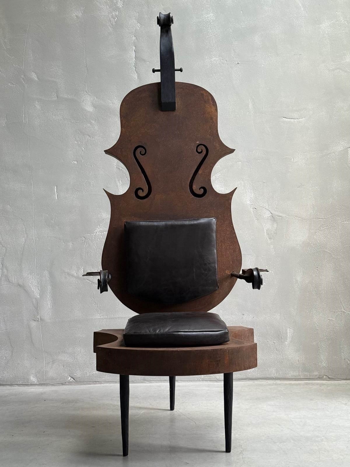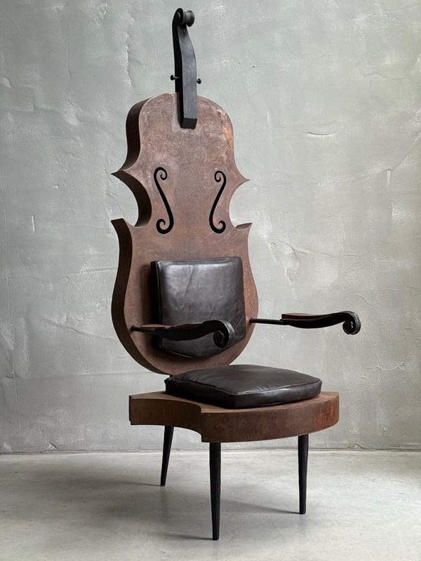 C1960 A French Metal Cello Chair with Leather Cushions - a talking point in any space!
