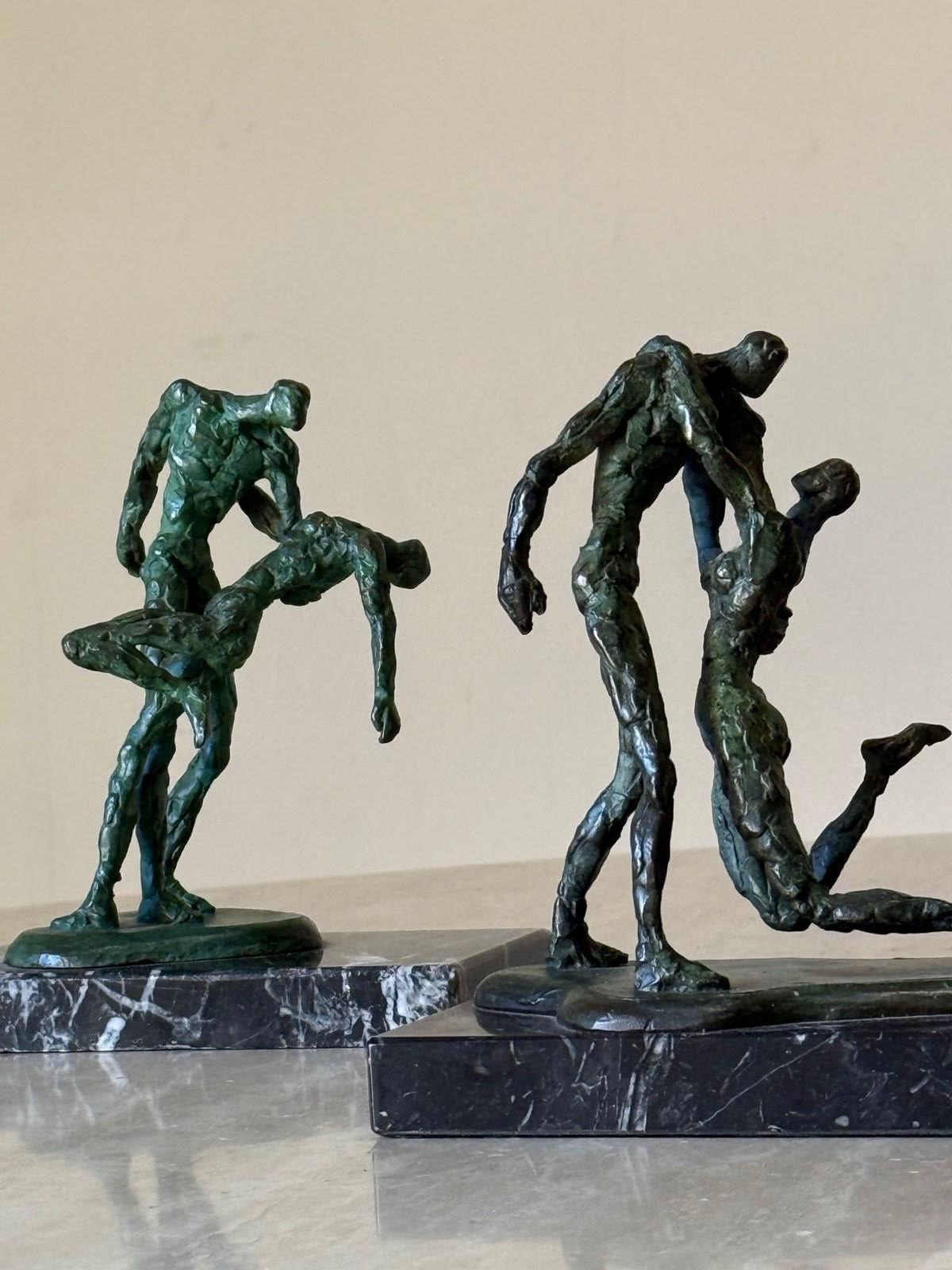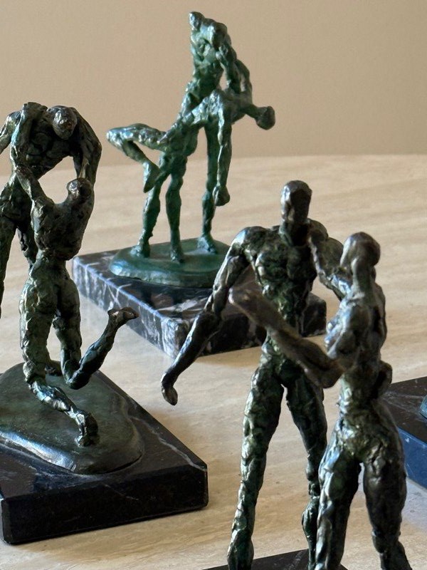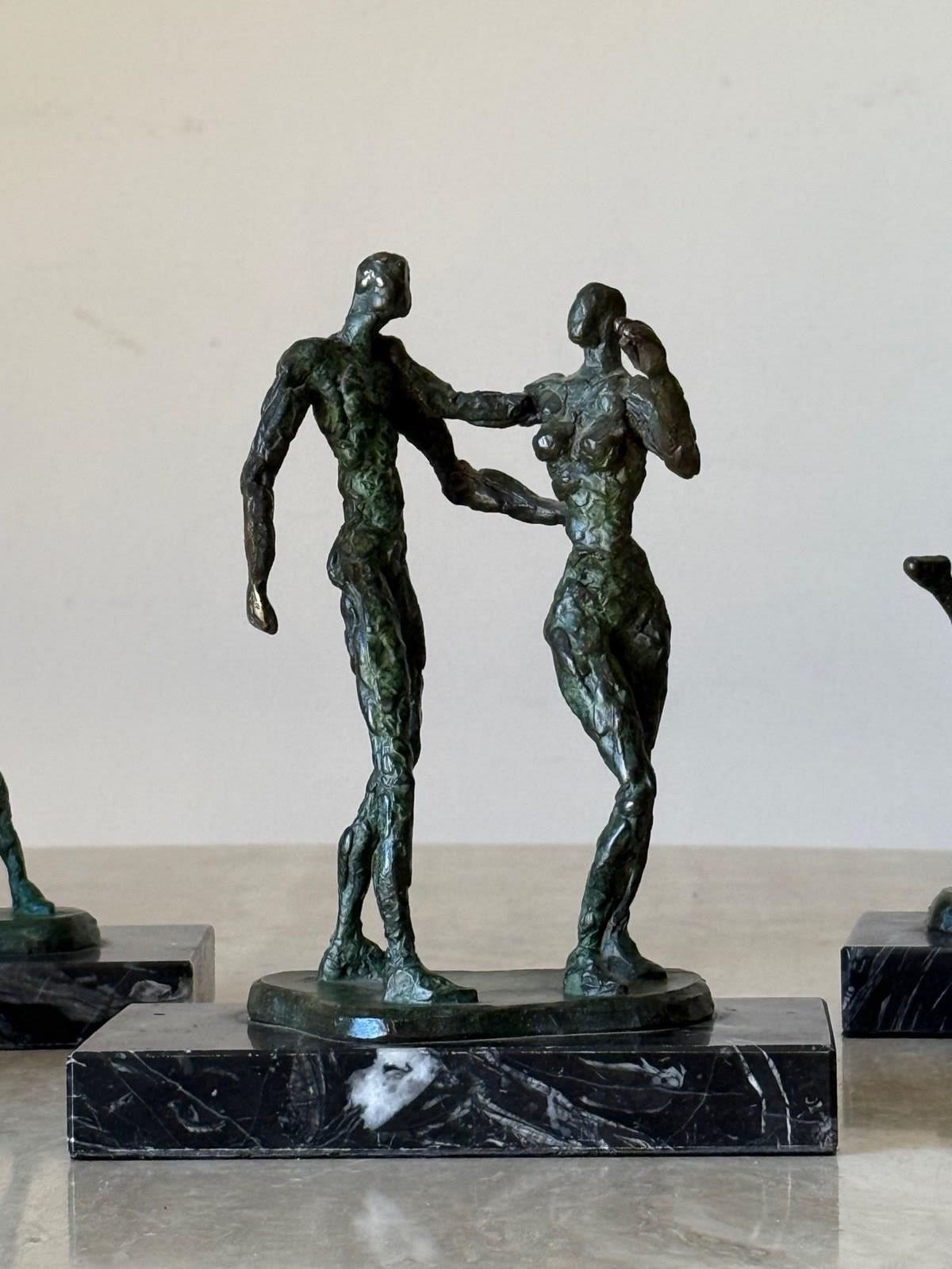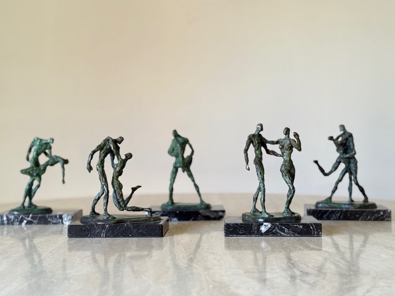 C1960 A Group Of French Bronze Dancing Figures / Giacometti Style