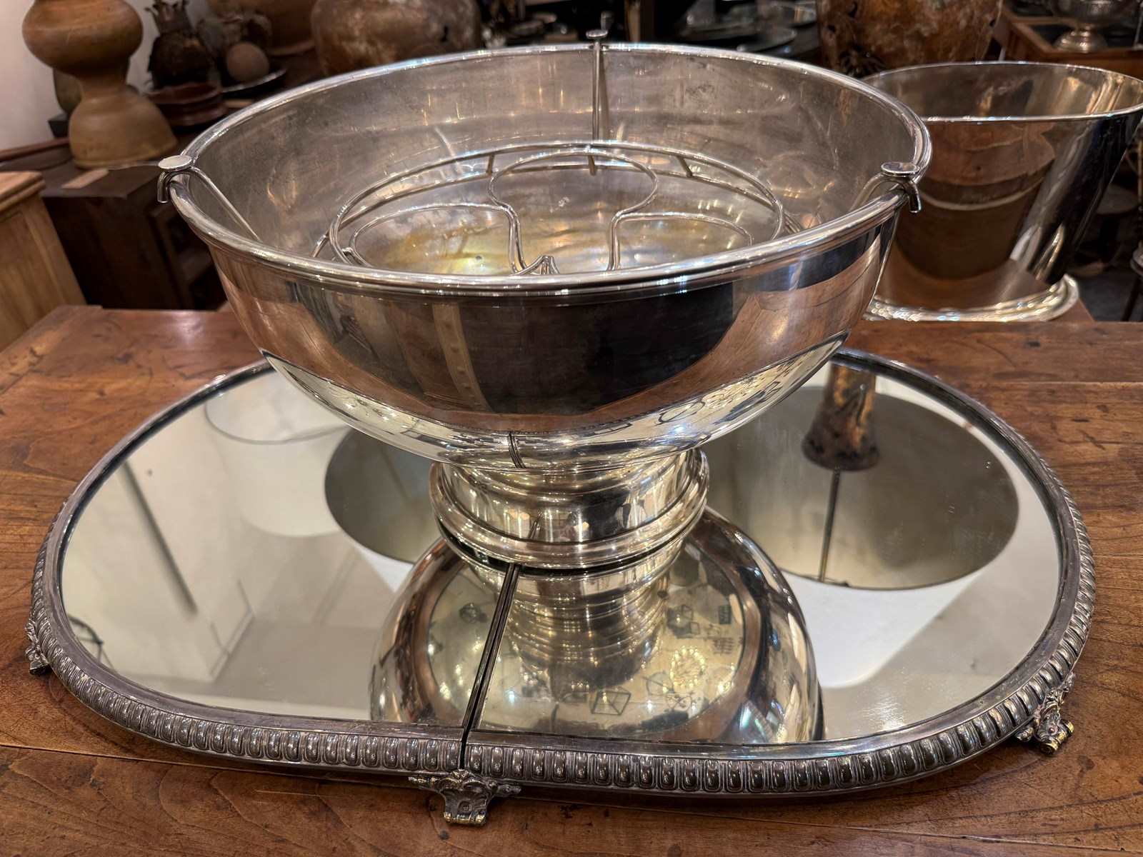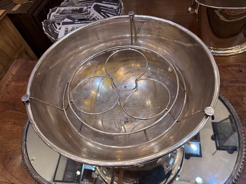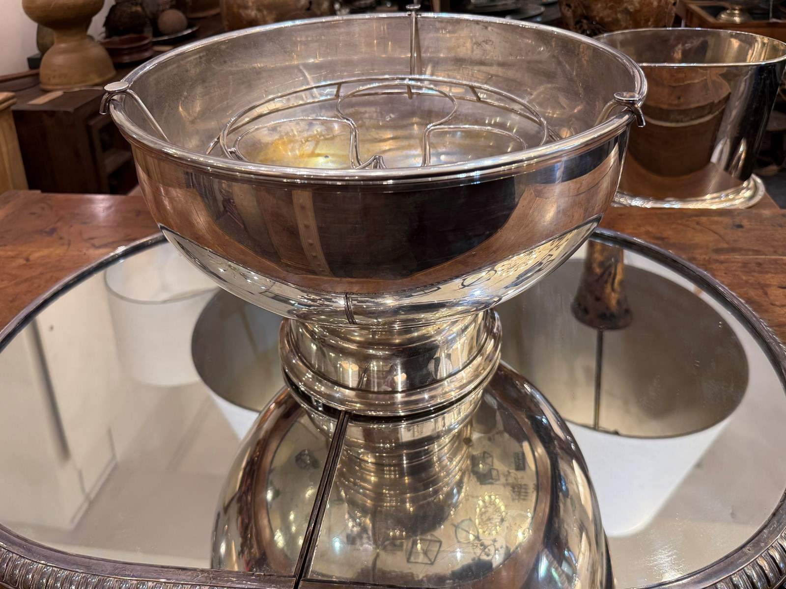 C1960 A Large French Silver Plated Champagne Bowl - with 3 bottle stand.