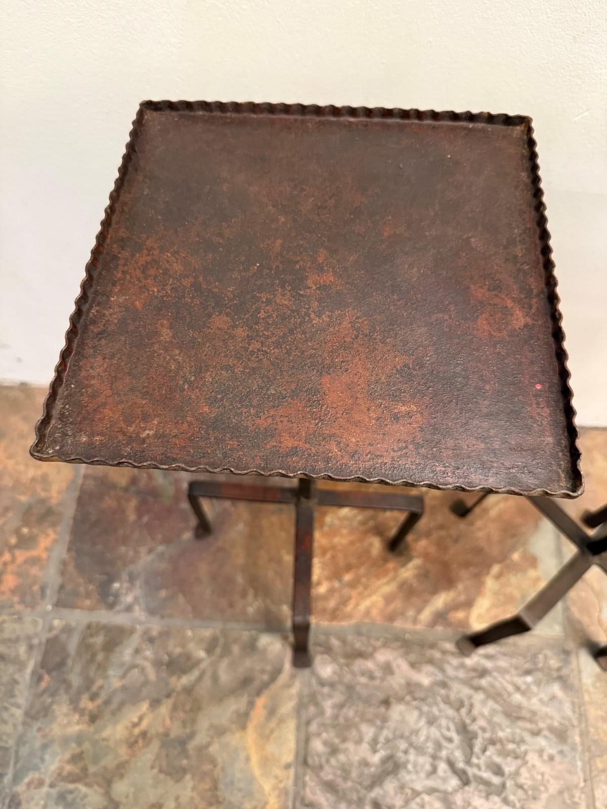 C1960 A Matched Pair of Spanish Martini Tables - Brown/Oxblood