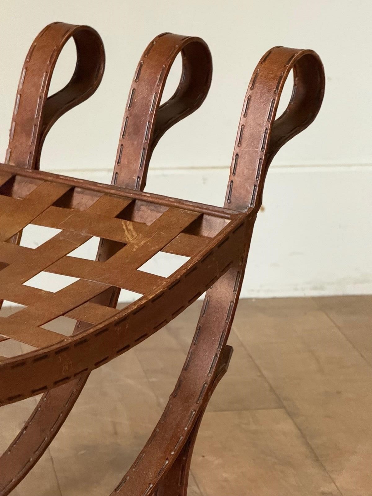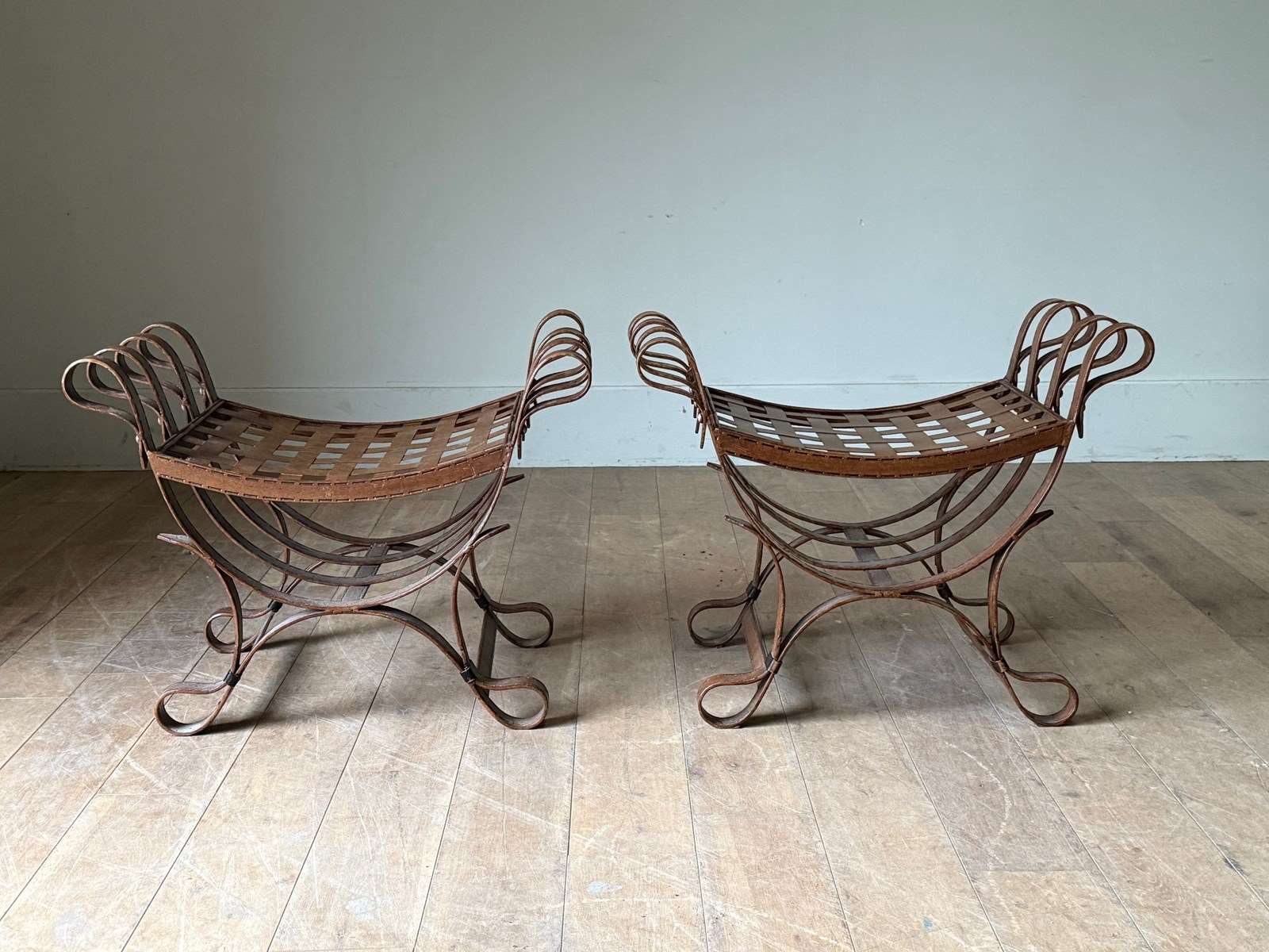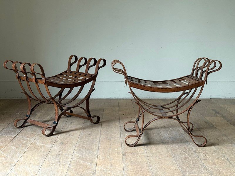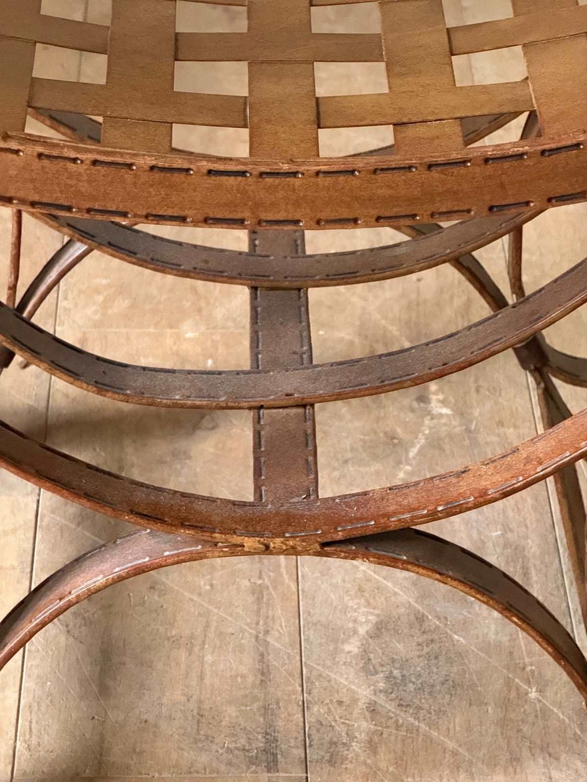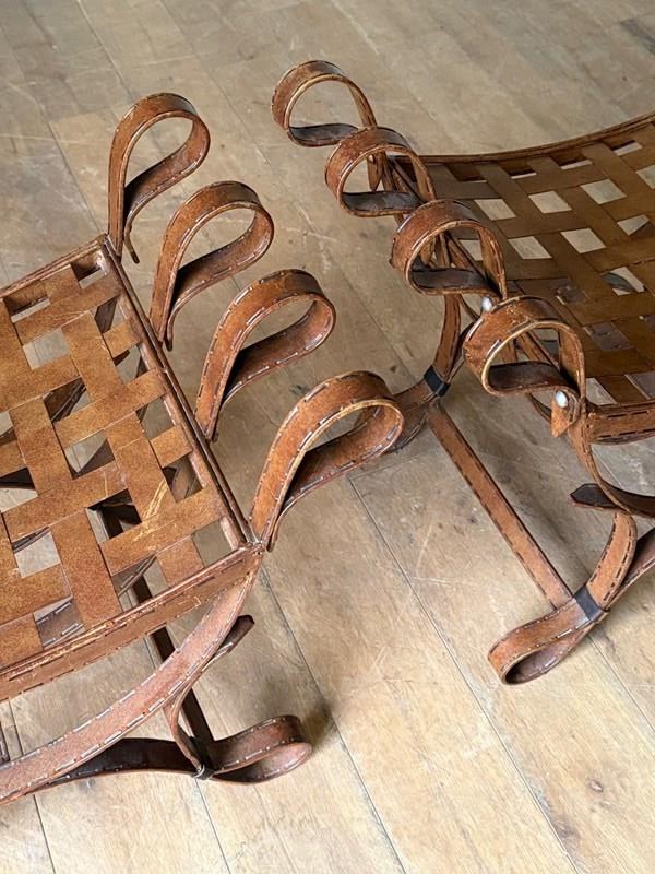 C1960 A Pair Of Spanish Faux Leather Iron Stools