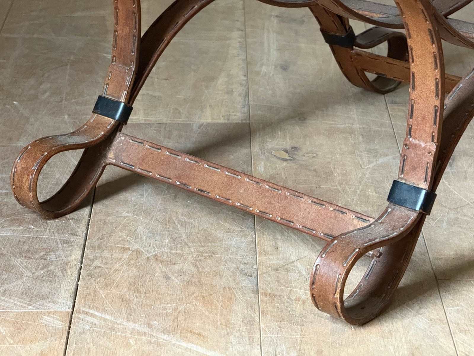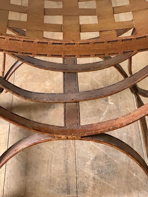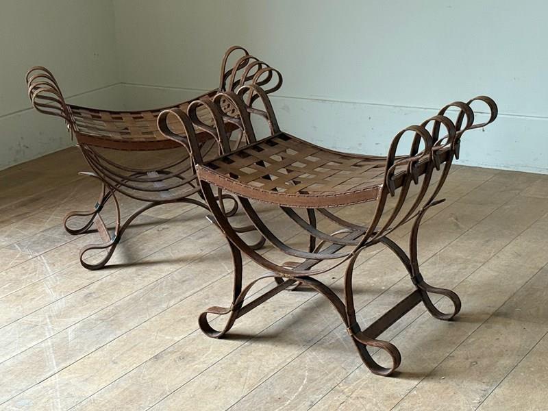 C1960 A Pair of Spanish Faux Leather Iron Stools