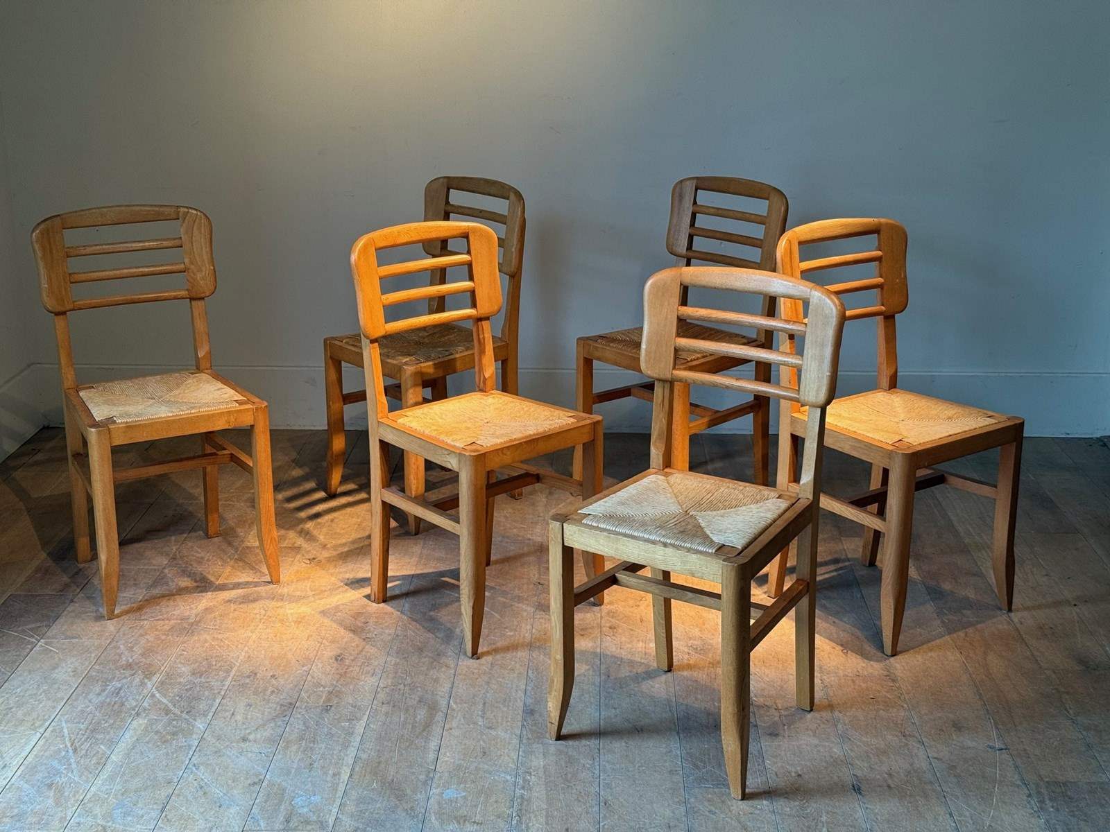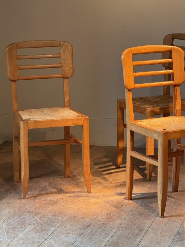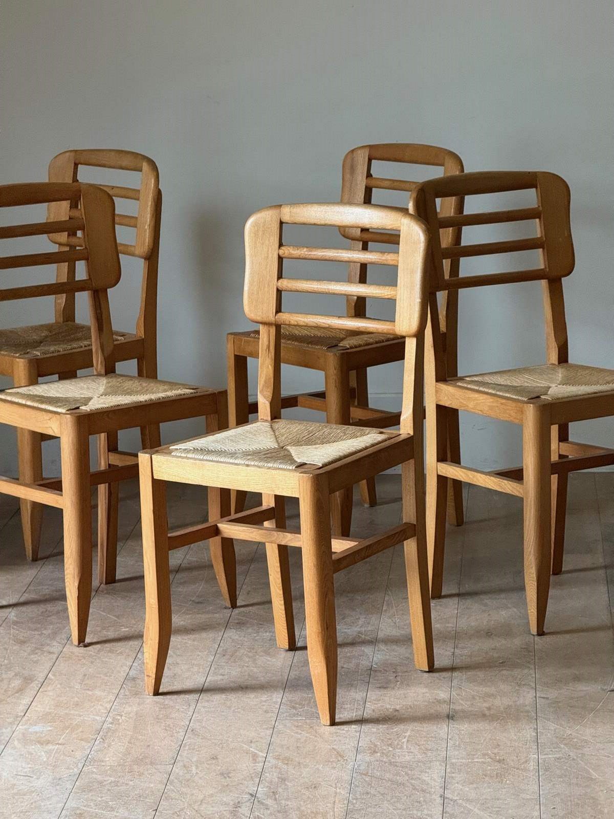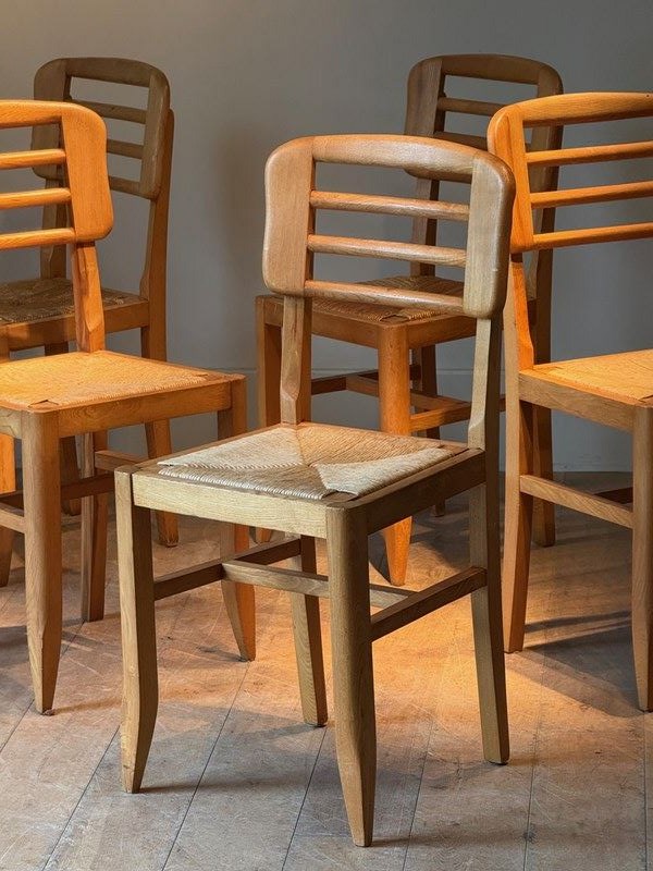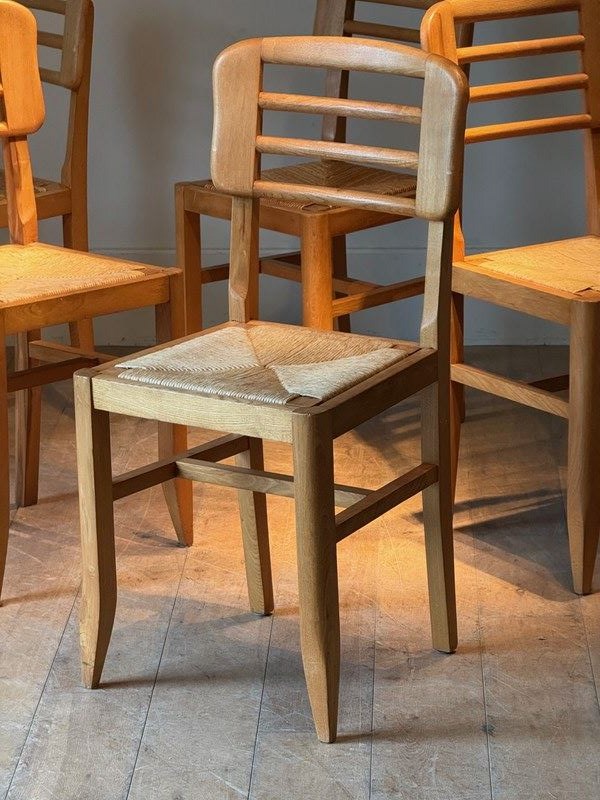 C1960 A Set Of Six French Ash Wood & Rush Dining Chairs
