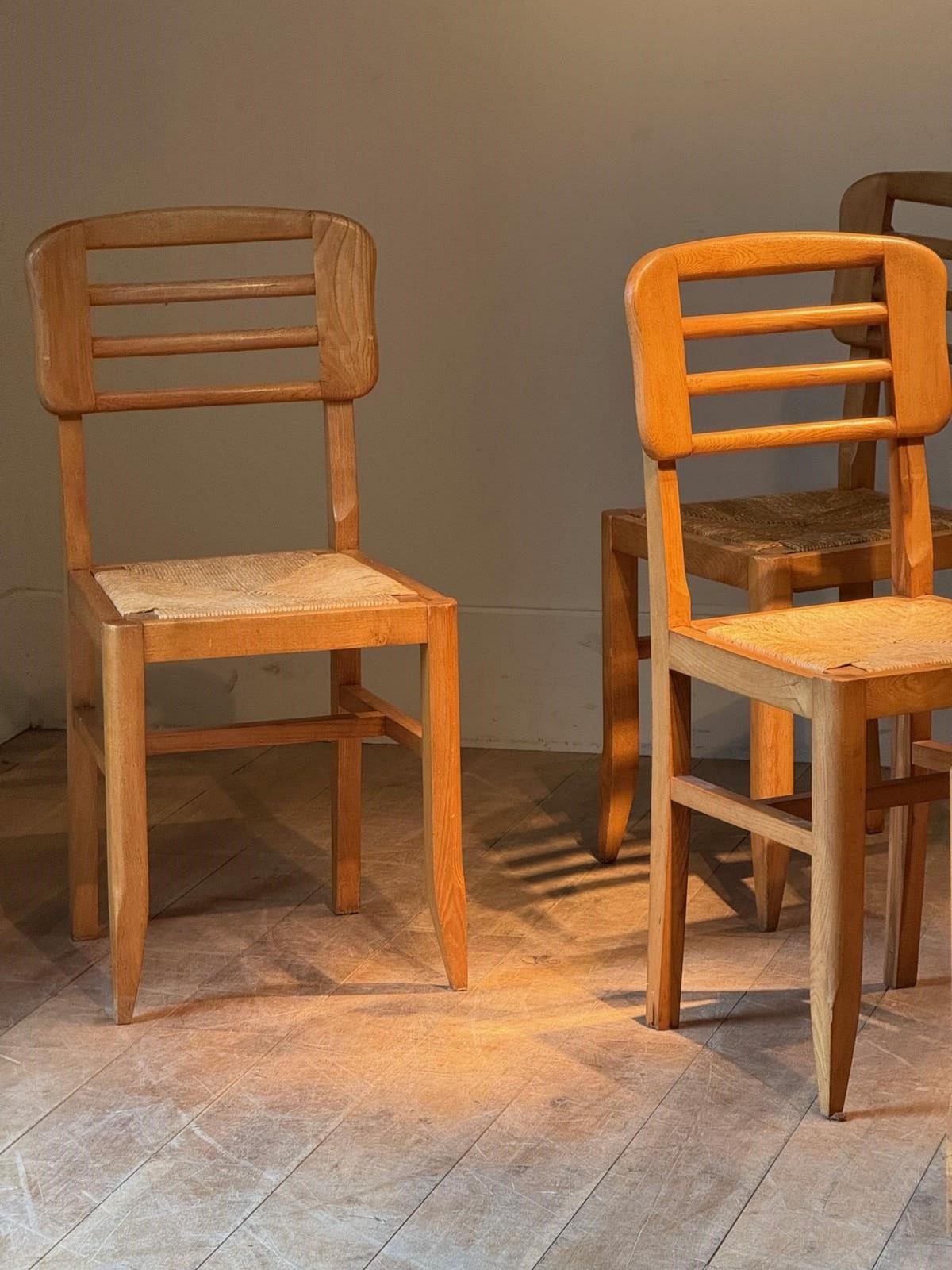 C1960 A Set of Six French Ash Wood & Rush Dining Chairs.
