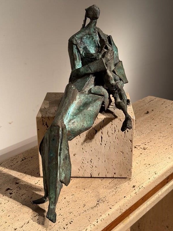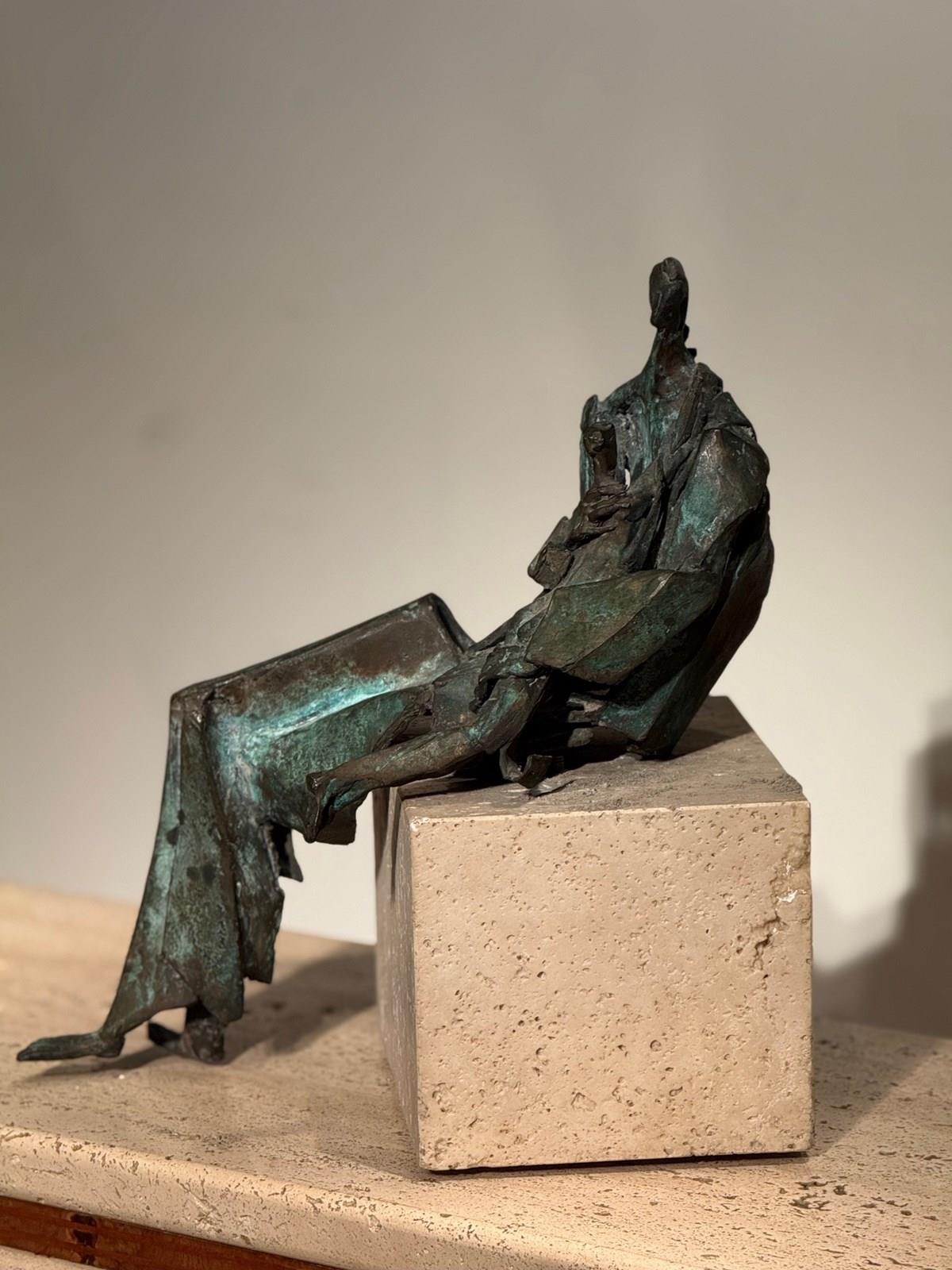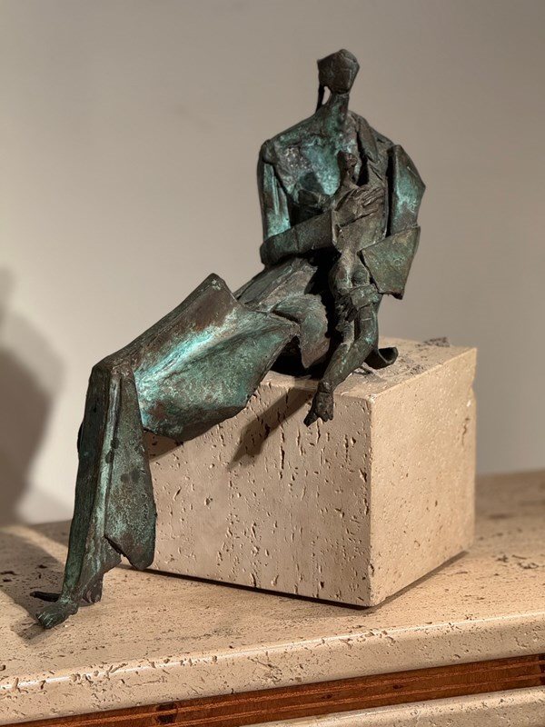 C1960 A Stylish French Bronze Seated Figure & Child.