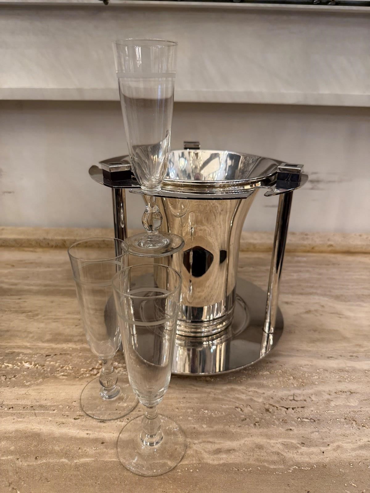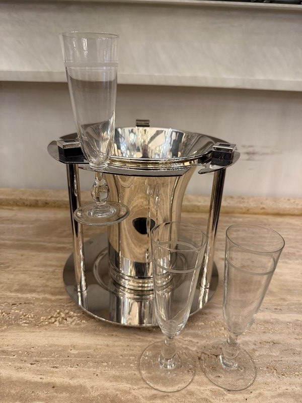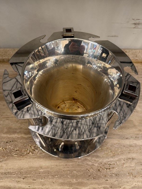 C1960 A Stylish French Silver Plated Champagne Bucket - with slots to hold 6 champagne glasses.