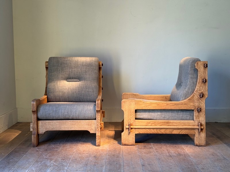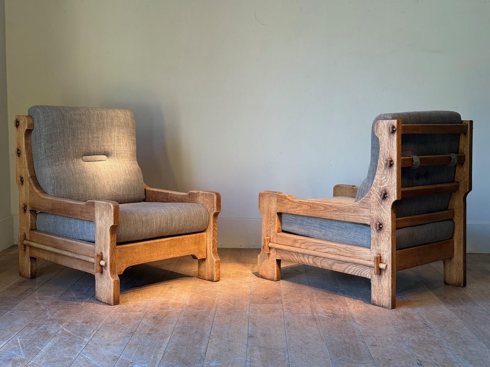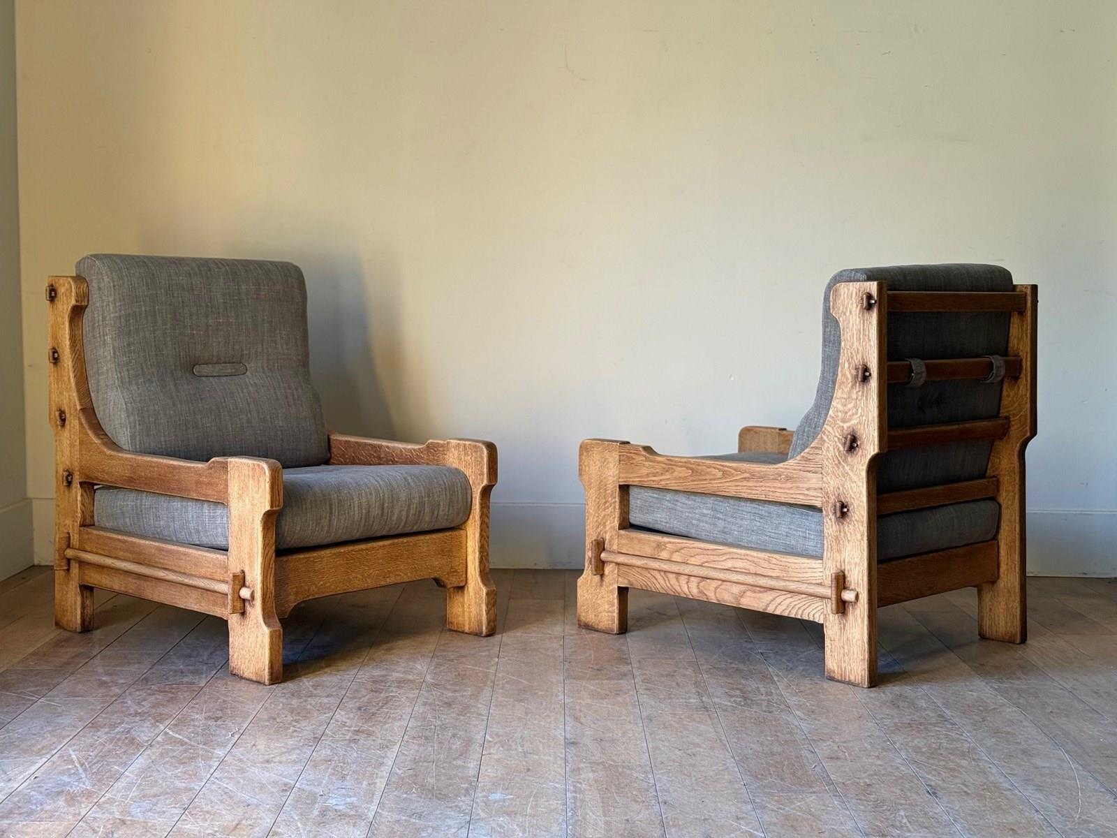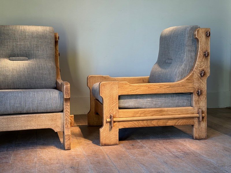 C1960 A Stylish Pair of Belgium Oak Armchairs.