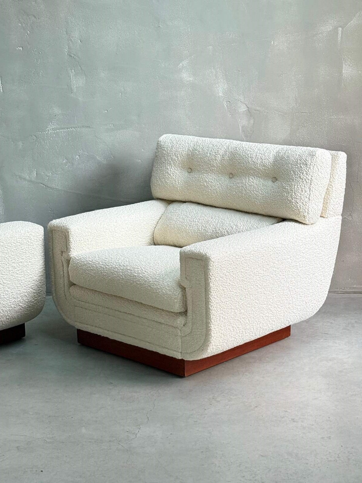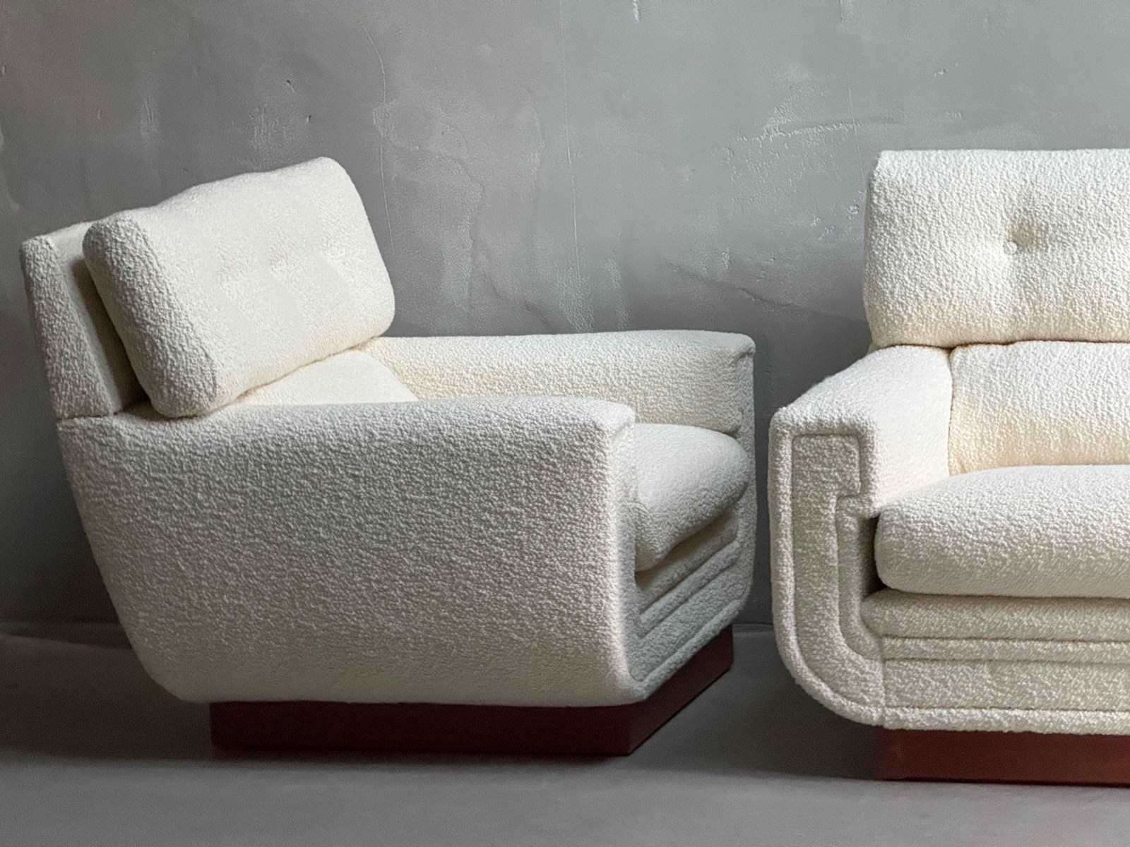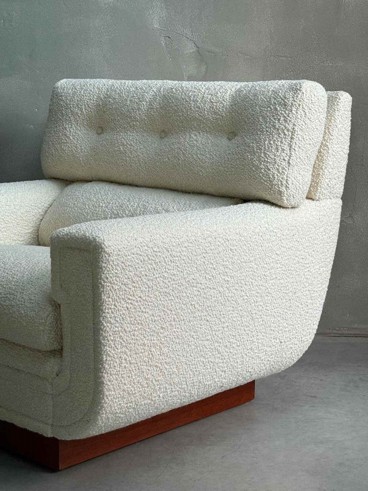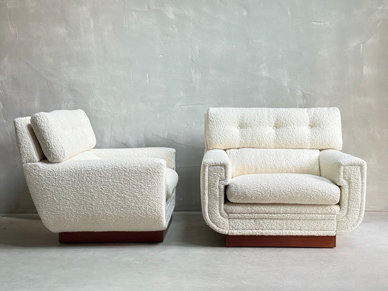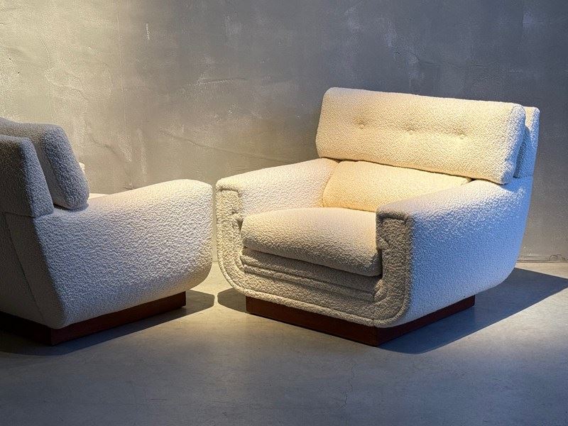 C1960s A Wonderful Pair of French Mid Century Armchairs in Boucle.