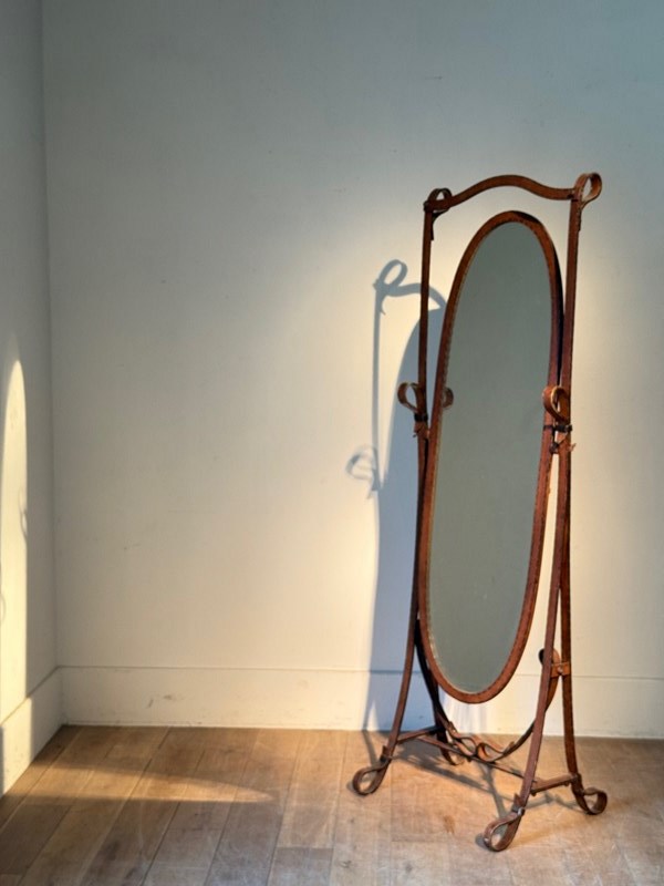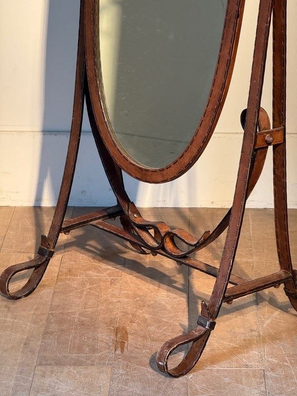 C1970 A Spanish Jacques Adnet Style Faux Leather Cheval Mirror.
