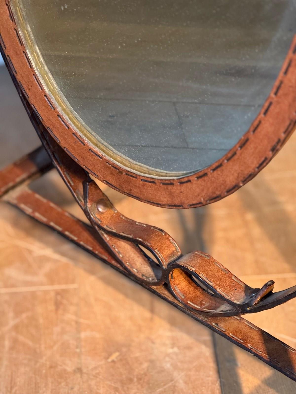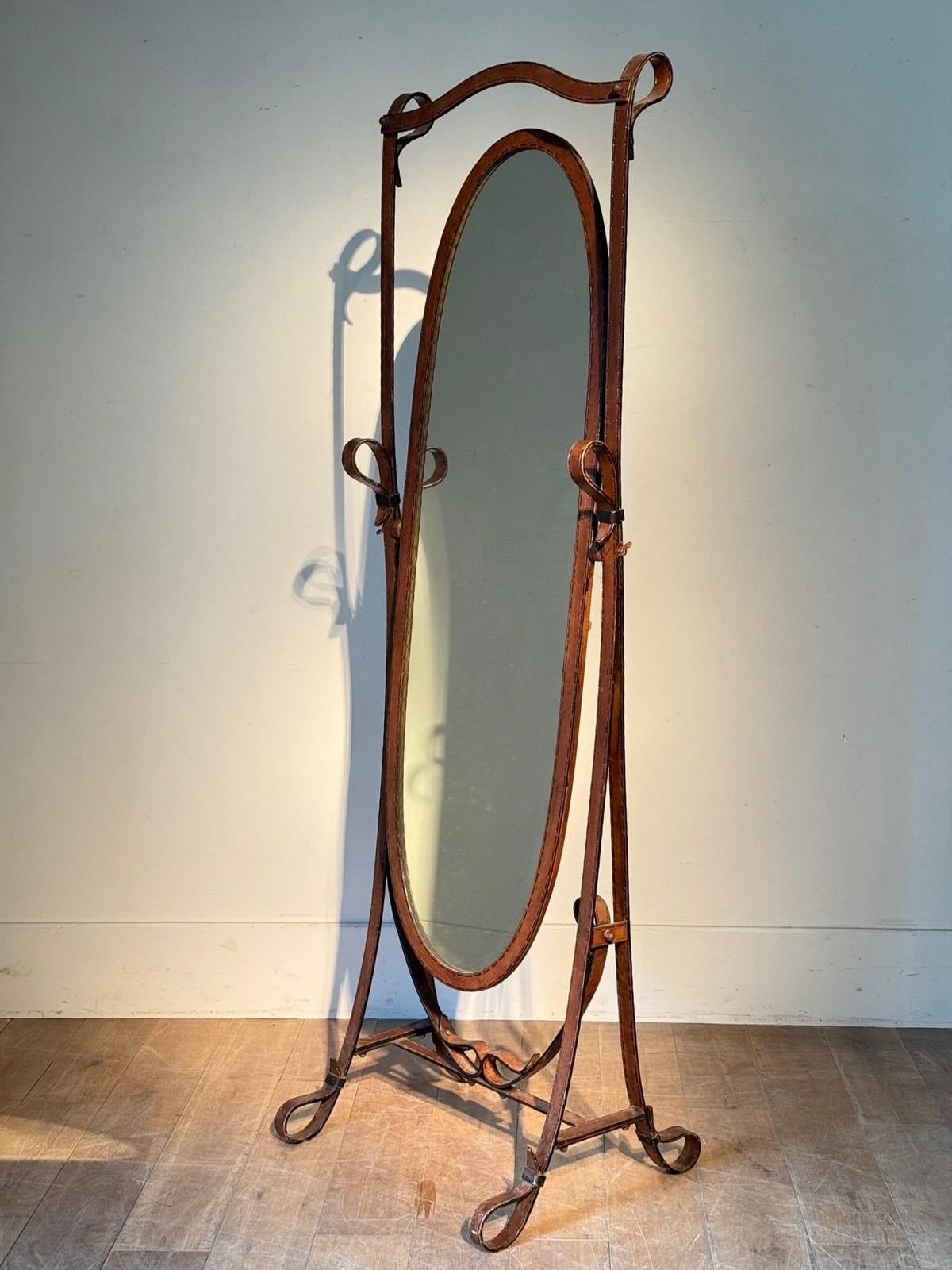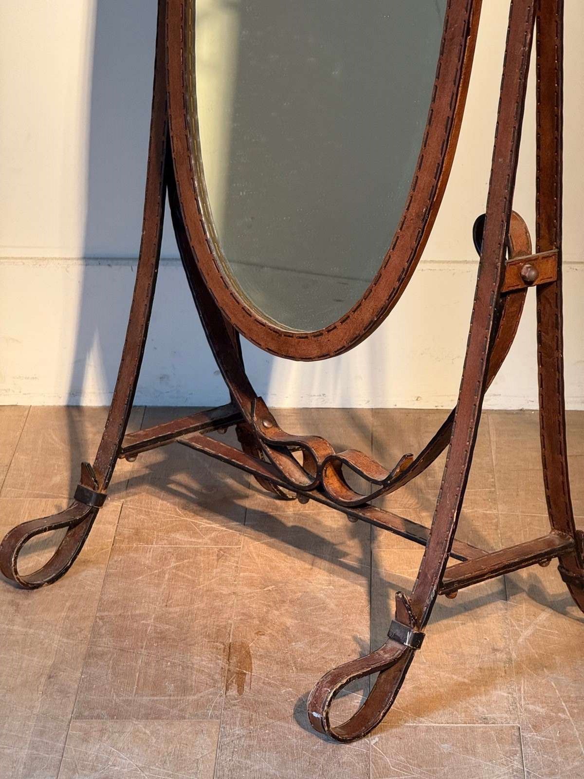 C1970 A Spanish Jacques Adnet Style Faux Leather Cheval Mirror