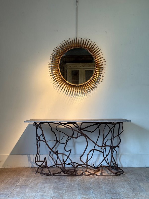 C1950 A French Sunburst Brass Mirror By Maison Jansen