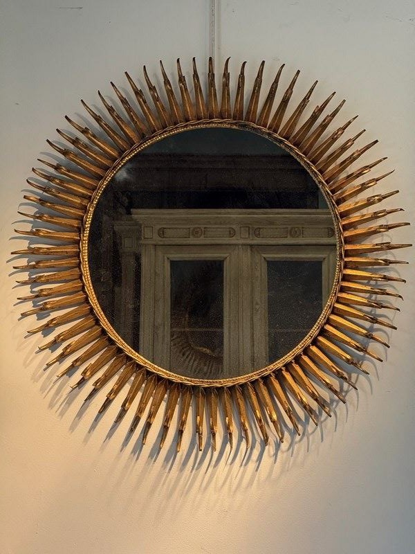 C1950 A French Sunburst Brass Mirror by Maison Jansen.