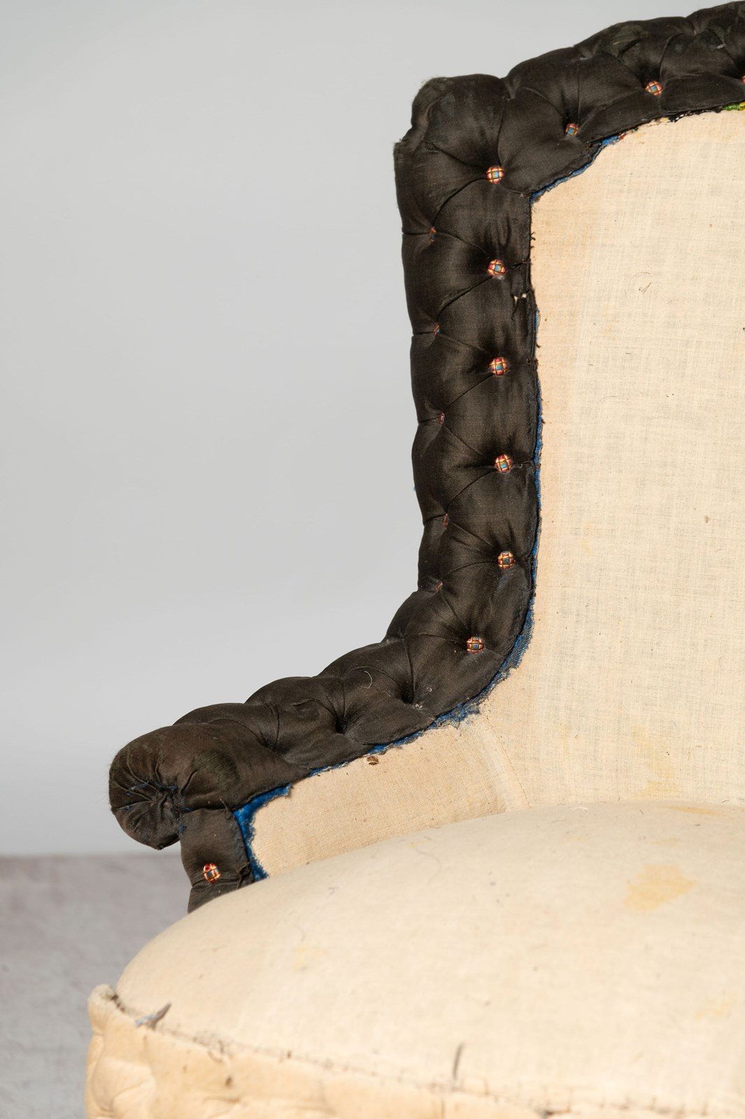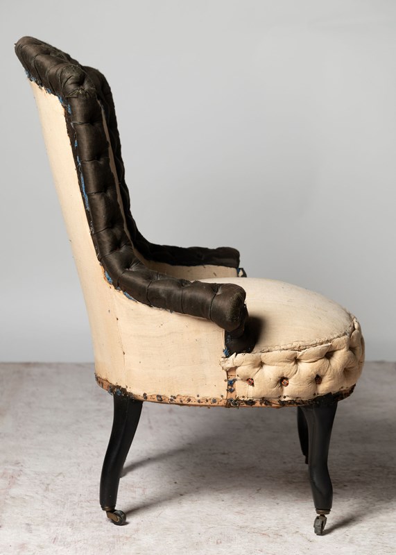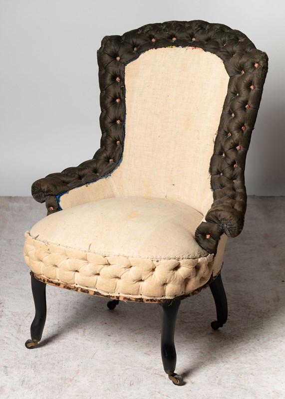 Pretty 19th Century French small chair, buttoned edge. Seat depth 18 inches. Floor to seat 16 inches. Ideal fireside, bedroom or occasional chair. Rare model.