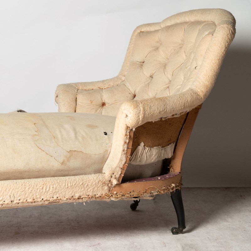 19th Century French chaise – daybed. Unusual model with the original removable pad. Seat length 54 inches.
