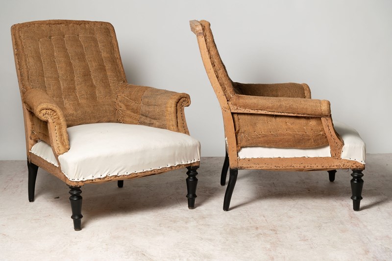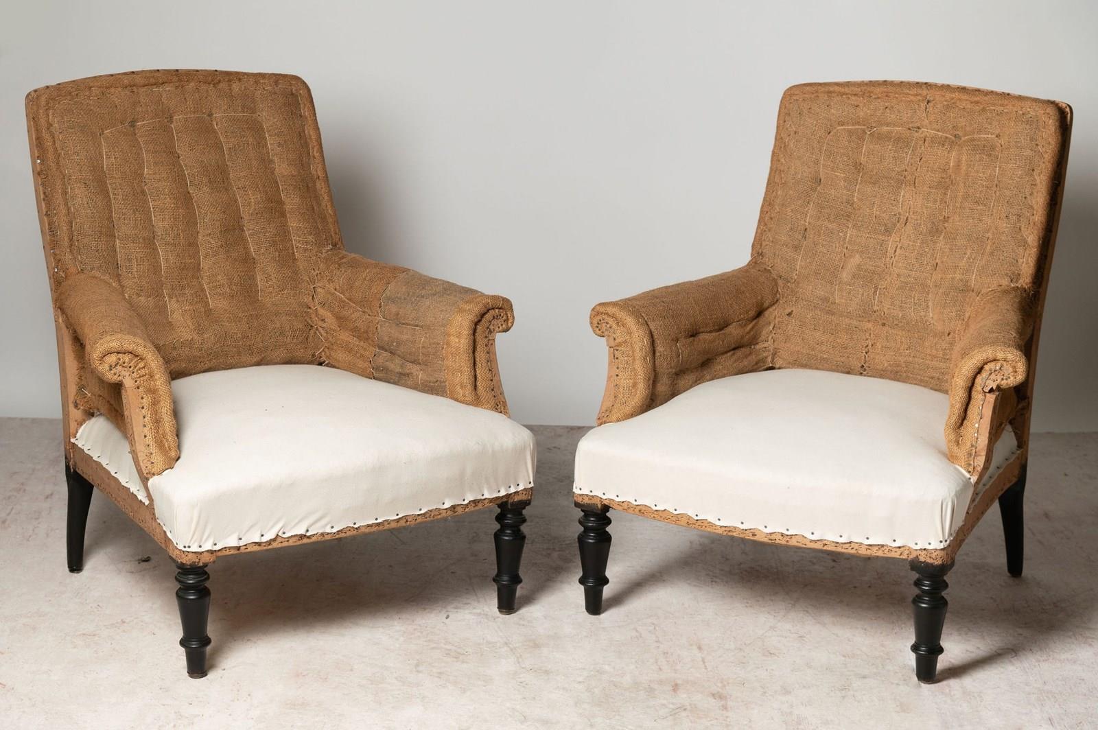 A lovely pair of antique French Napoleon chairs. Seat depth 22 inches.