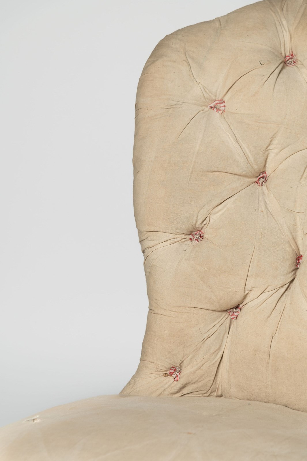 Unusual antique French slipper chair, ideal fireside, bedroom or occasional chair. Seat depth 17 inches. Floor to seat 15 inches.