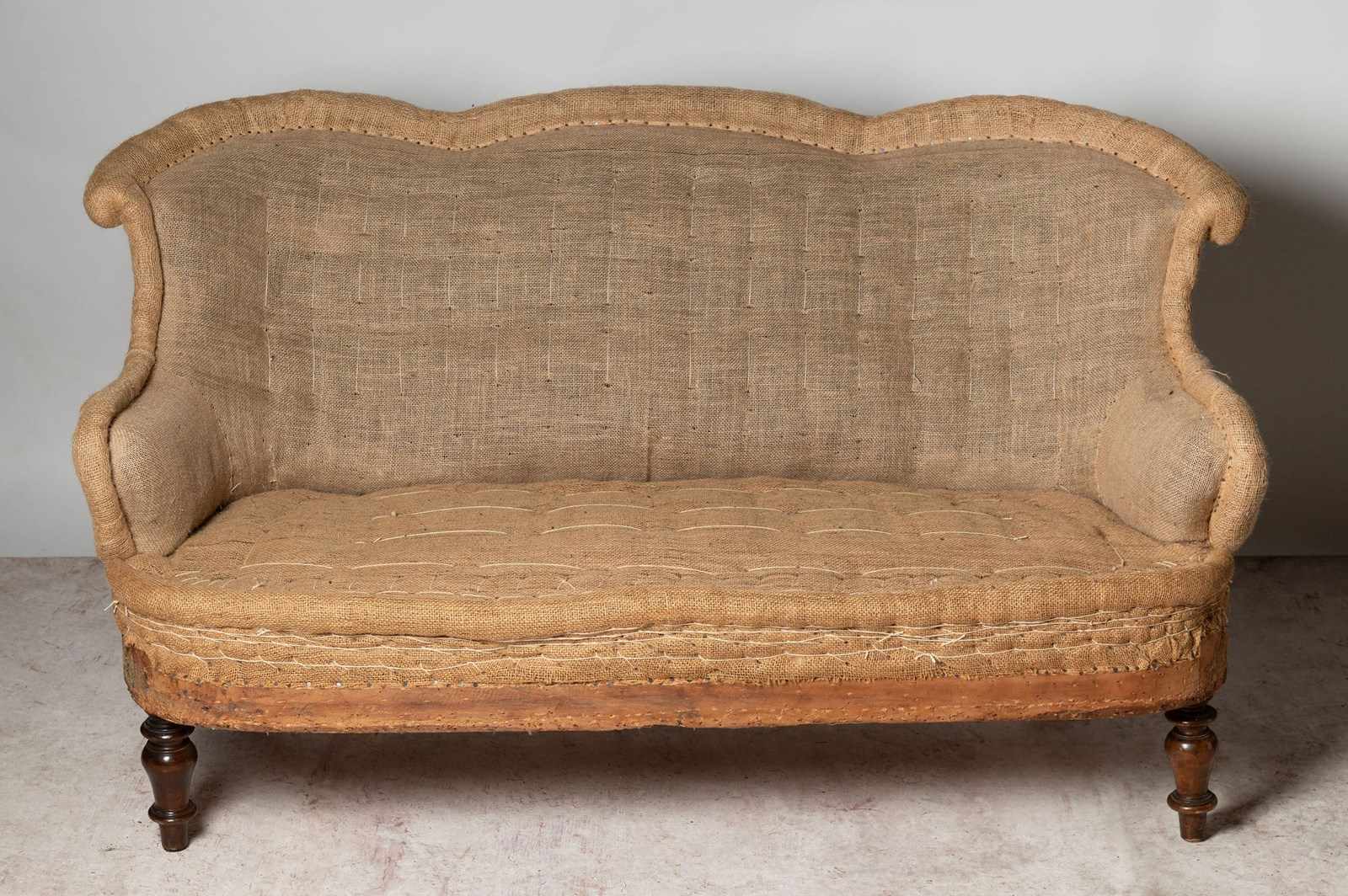 A lovely shape antique French sofa. Seat depth 21 inches.