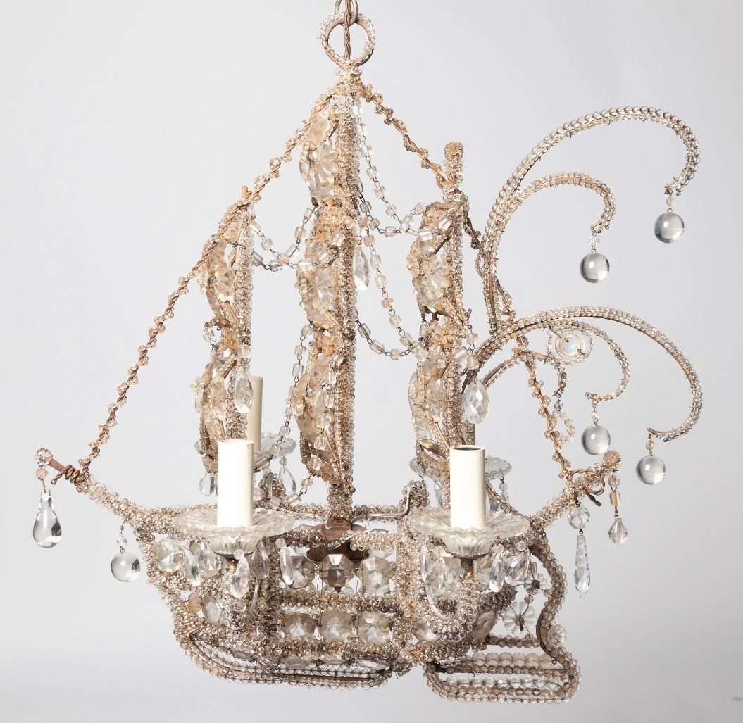 Italian ship – galleon chandelier, fully restored and rewired. Beautiful beaded detail.