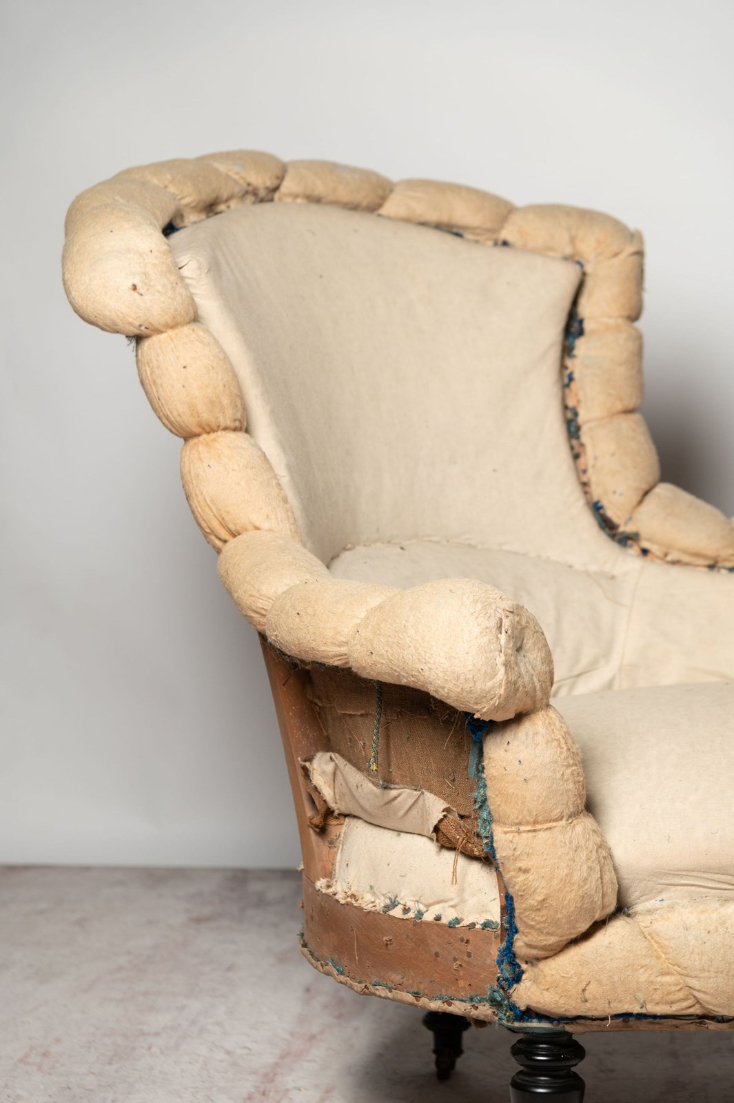 Lovely Napoleon III 19th Century French piecrust sofa – chaise. Seat length 50 inches. Floor to seat 16 inches. Seat depth 23 inches. Height 37 inches at the highest point, height 21 inches in the middle at the back.