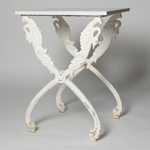 Wonderful 19th Century Napoleon III period openwork cast iron table with carrara marble top. Delightful lion paw feet, original paint. Detail to all four sides. Age related wear to the marble as to be expected, nothing that detracts.