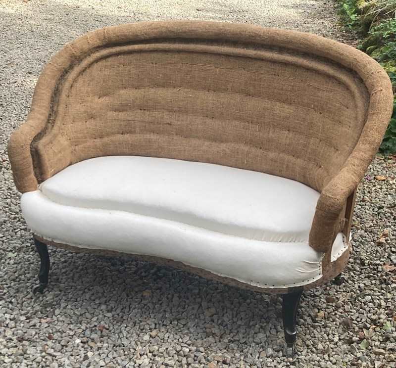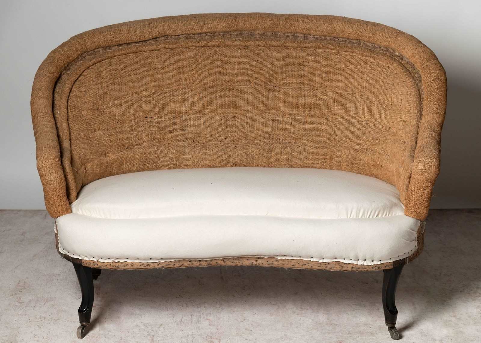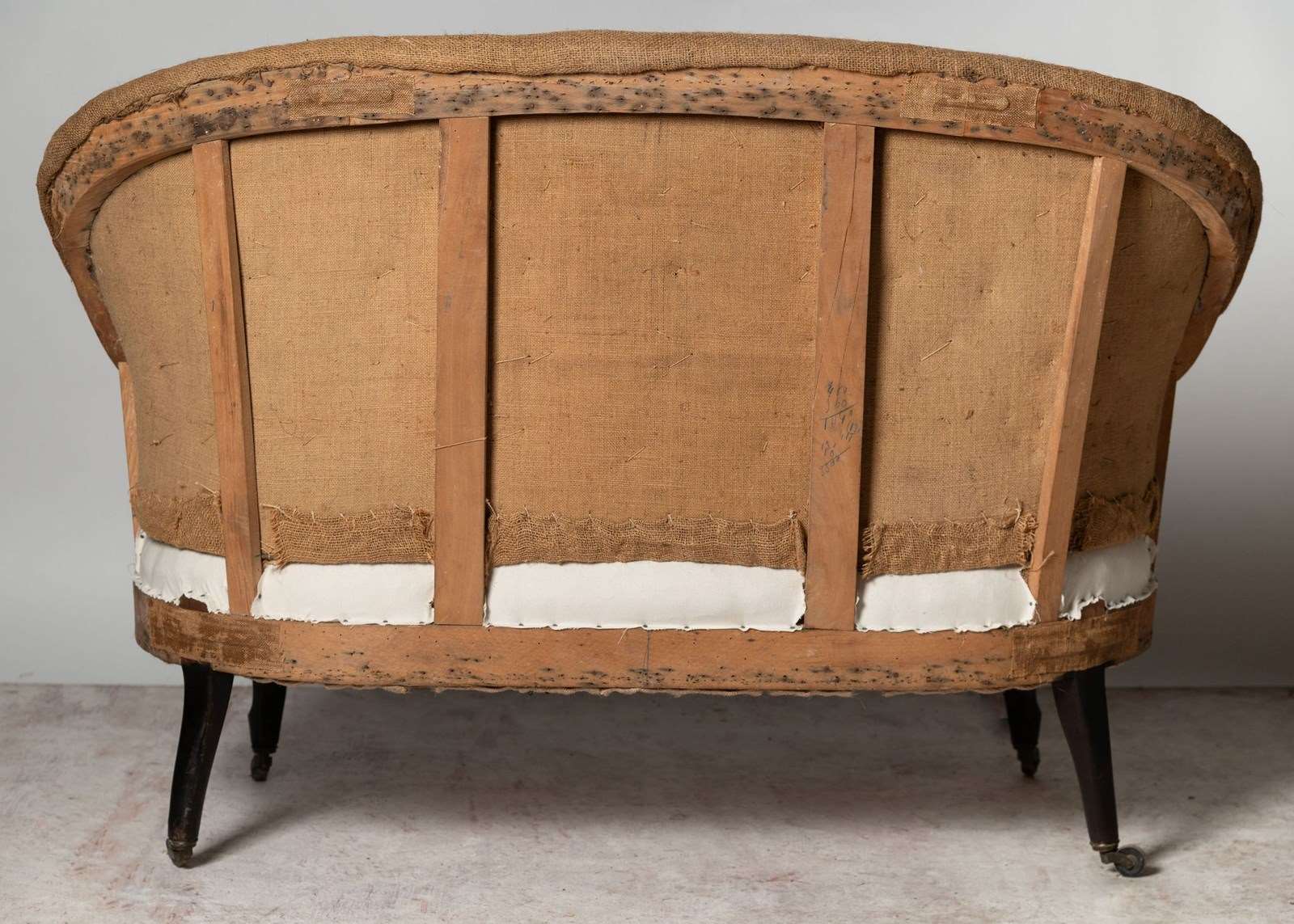 Lovely shape antique French sofa, 19th Century. Seat depth 21 inches. Floor to seat 16 inches.