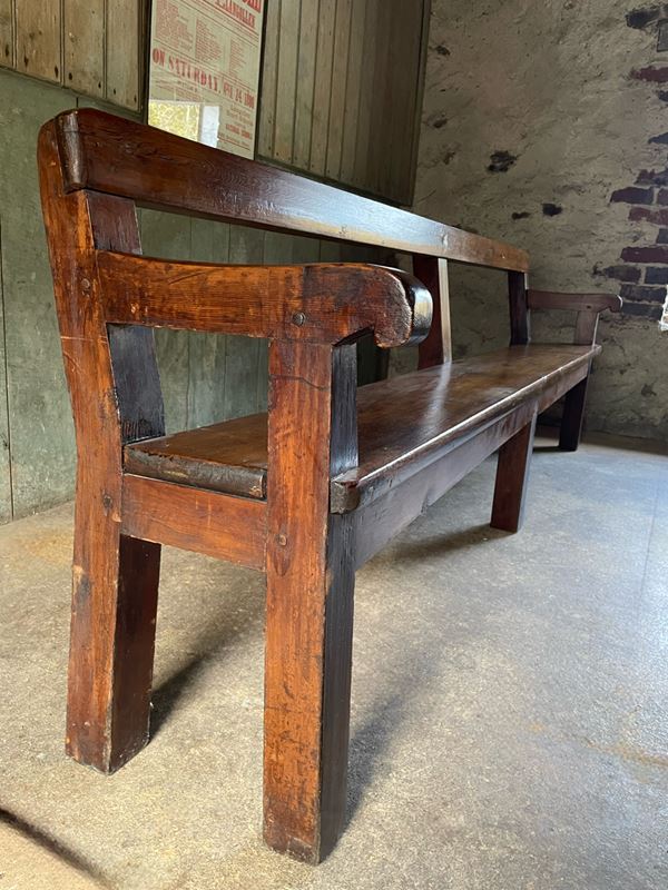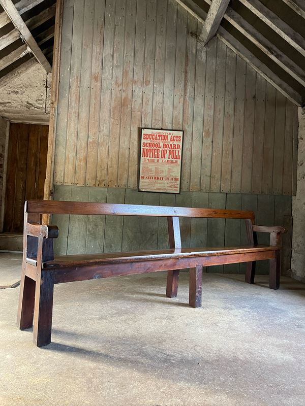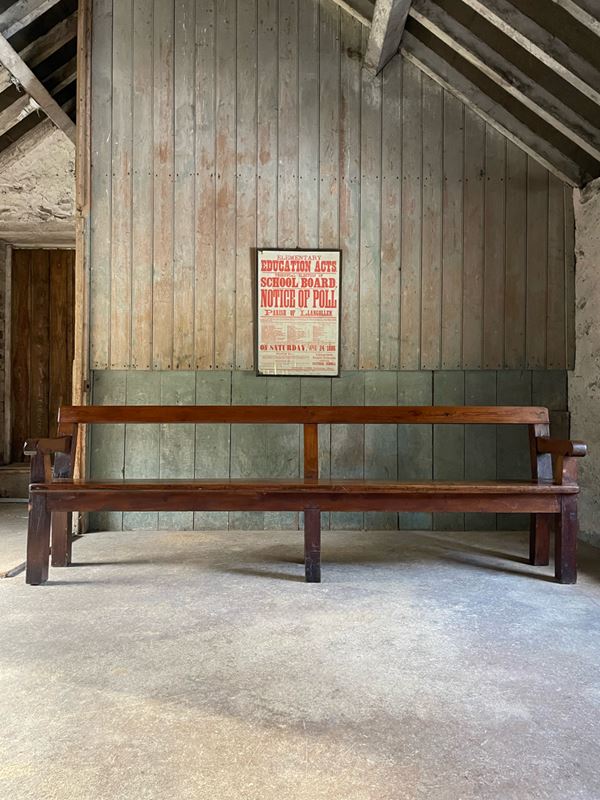A run of pleasingly simple C19th Jointed, stained pine chapel benches.