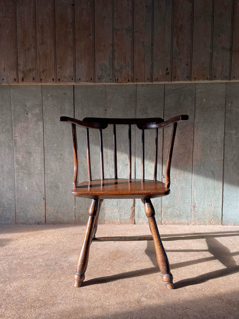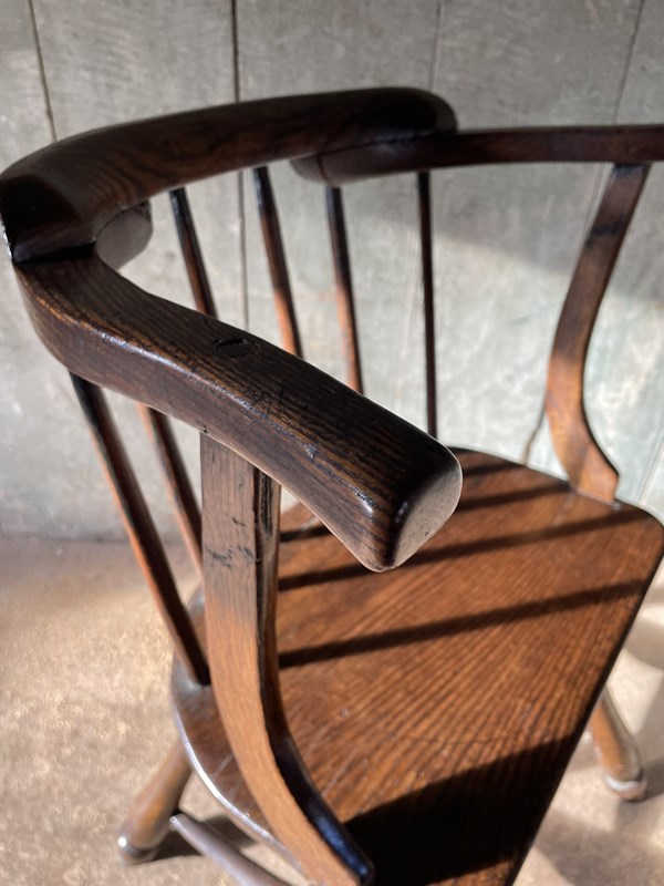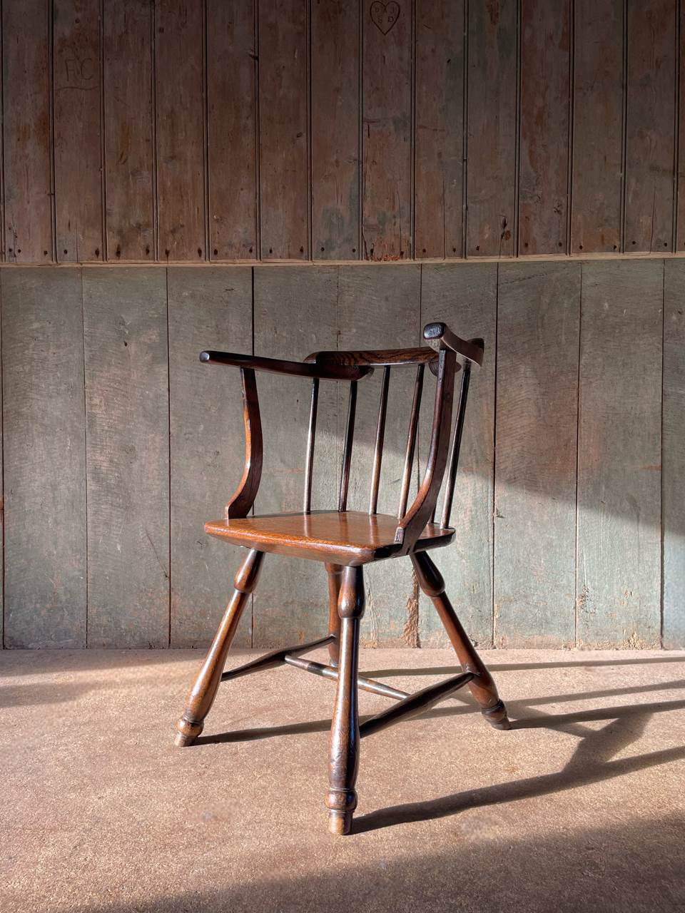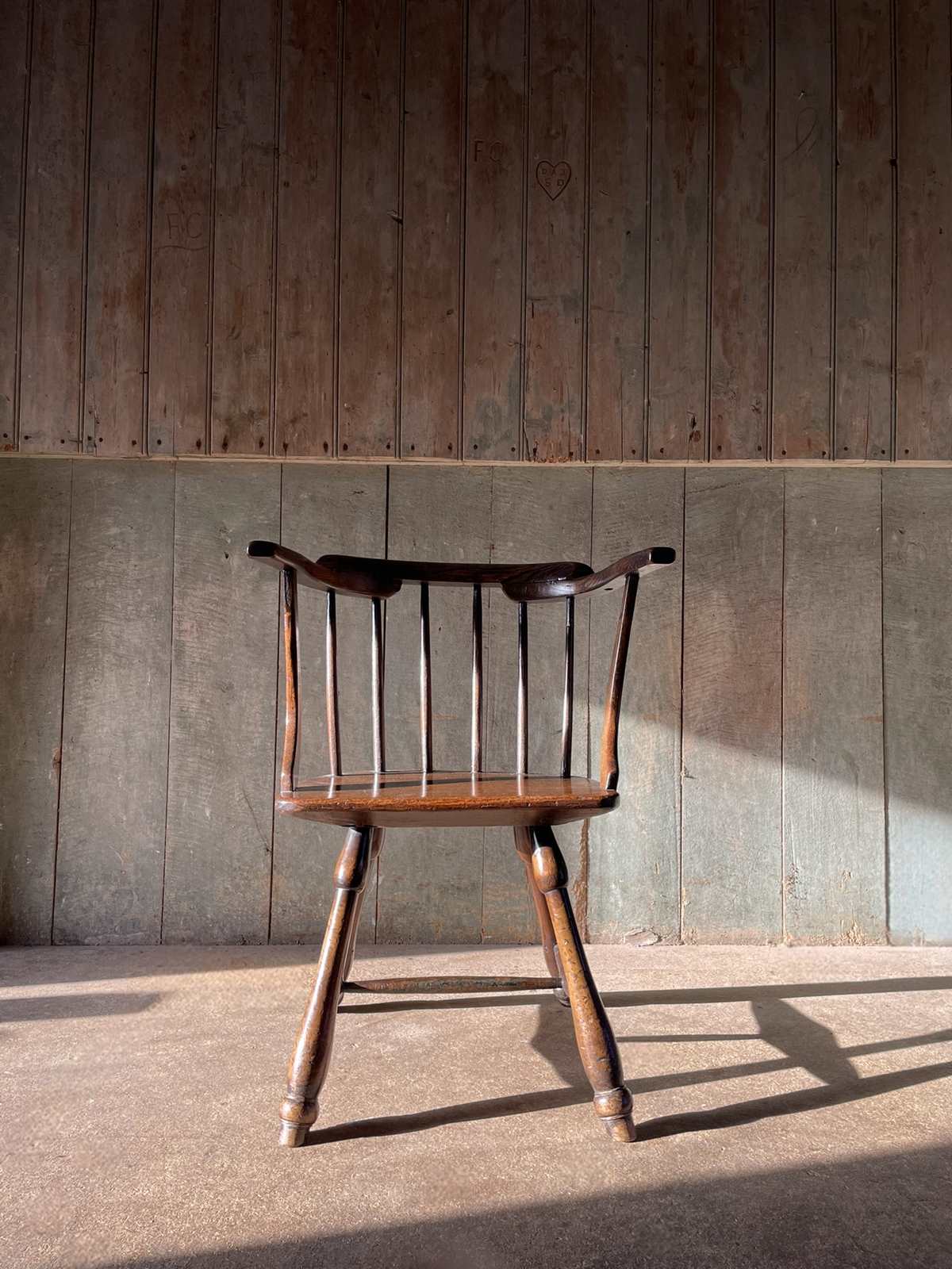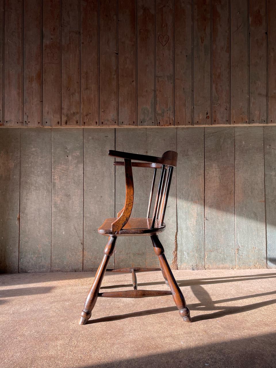 A charming C19th, primitive, low back Windsor chair constructed in elm, ash and beech.