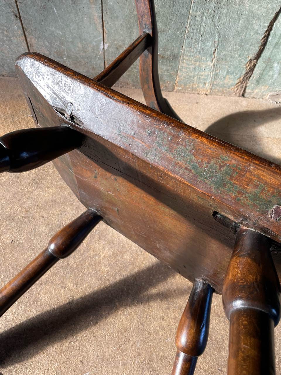Remnants of an old green painted finish.