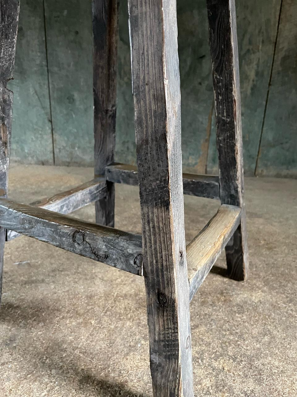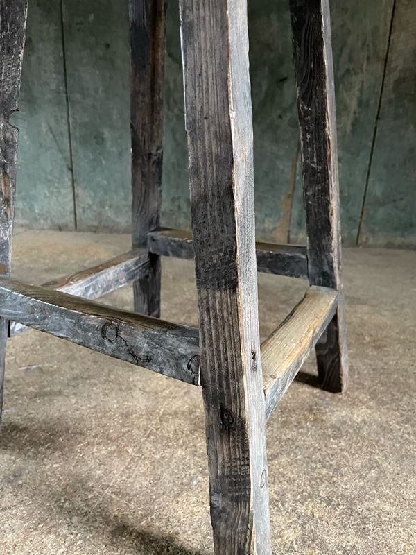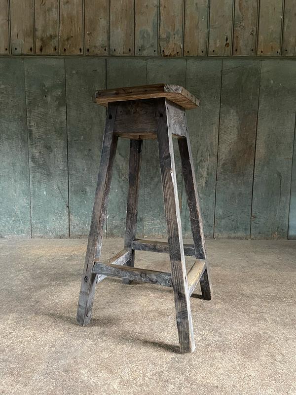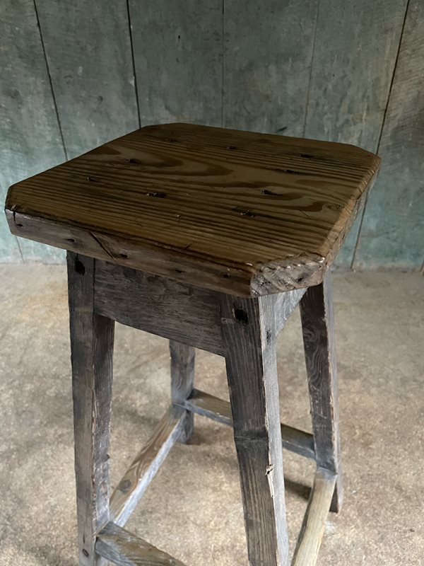 A well engineered, early C20th, pine work stool with an attractive silvered colour to the frame.