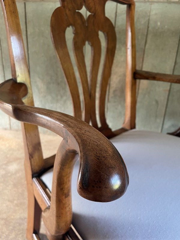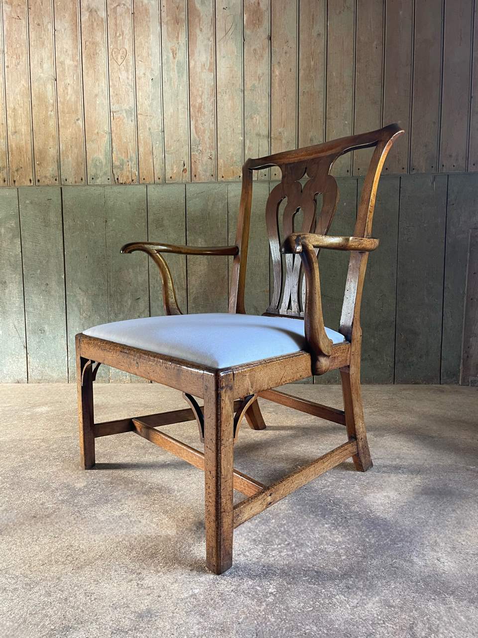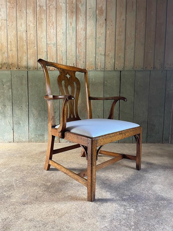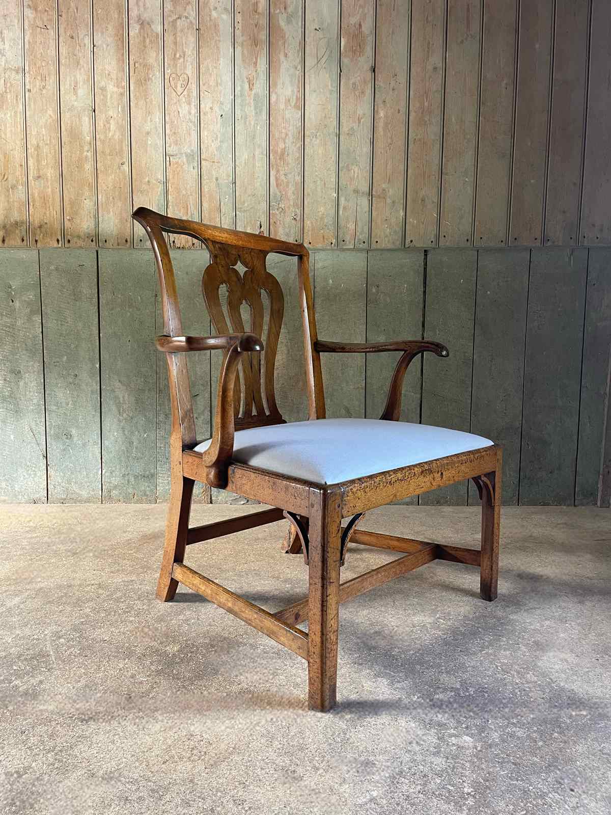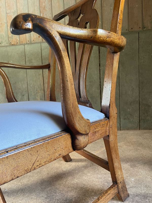 A particularly wide chair, with pierced splat back, beautifully shaped arms and the most wonderful, mellow, nutty colour.
