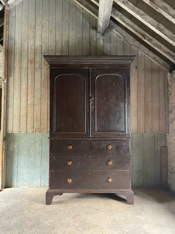 A superior quality, George IV period, pine housekeeper’s cupboard in its original painted finish.