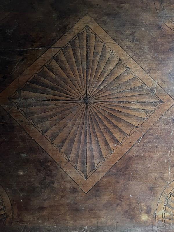 Constructed in pine with the most wonderful patination, the decoration reminiscent of the penwork decorated furniture produced in the Alto Adige region of Northern Italy.