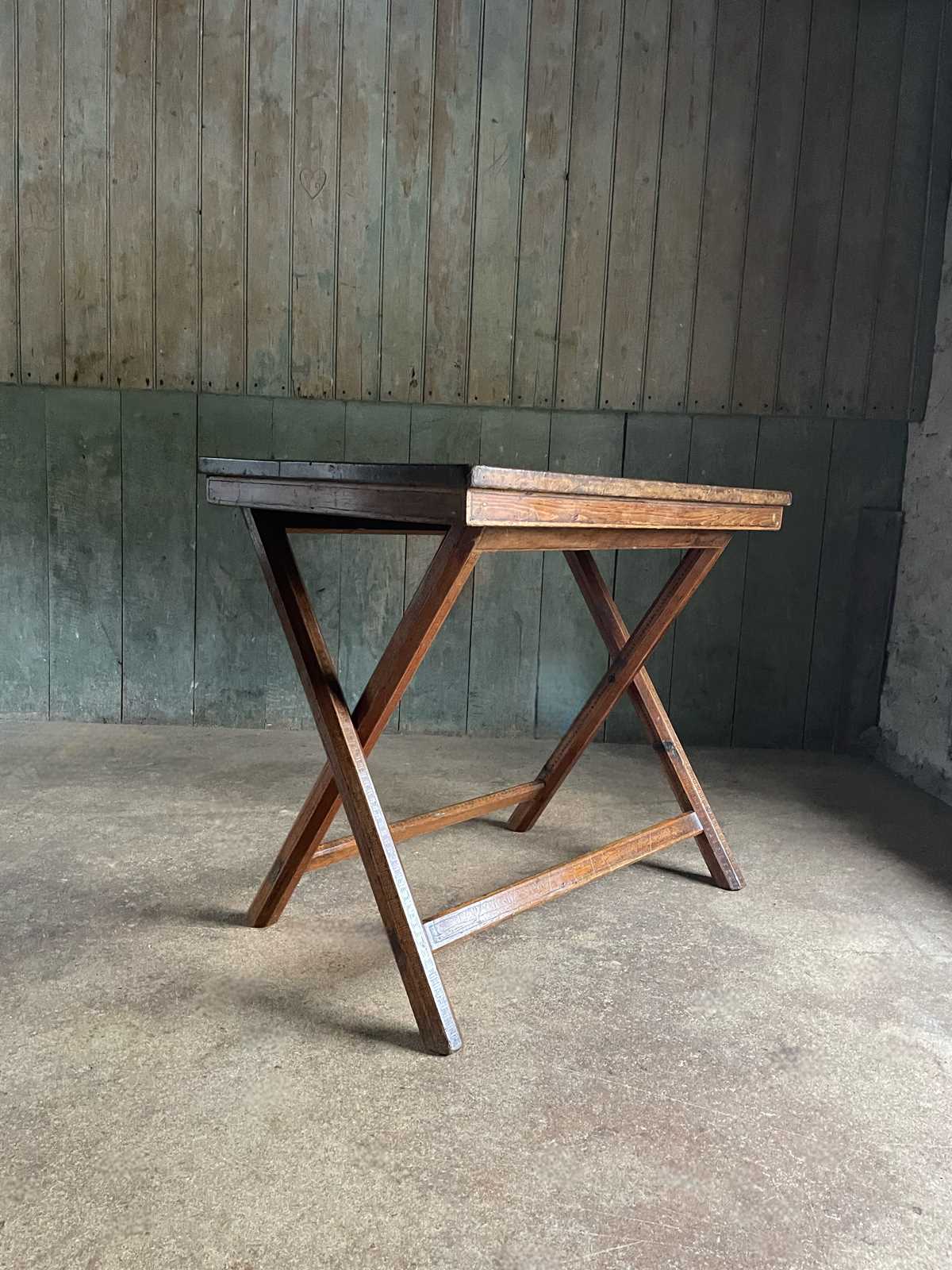 Anattractive X-Frame folding table decorated with poker and penwork designs in the neoclassical style.