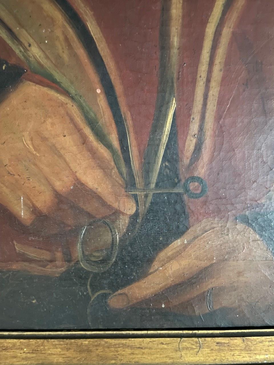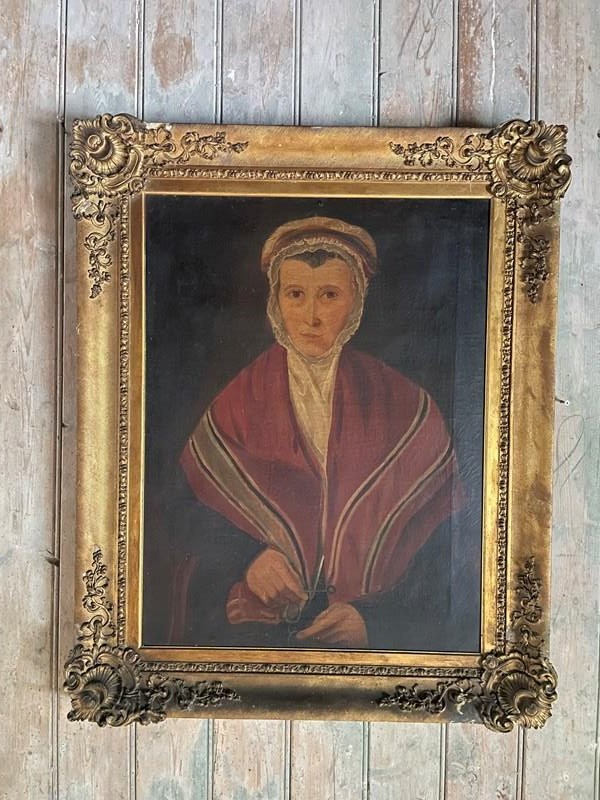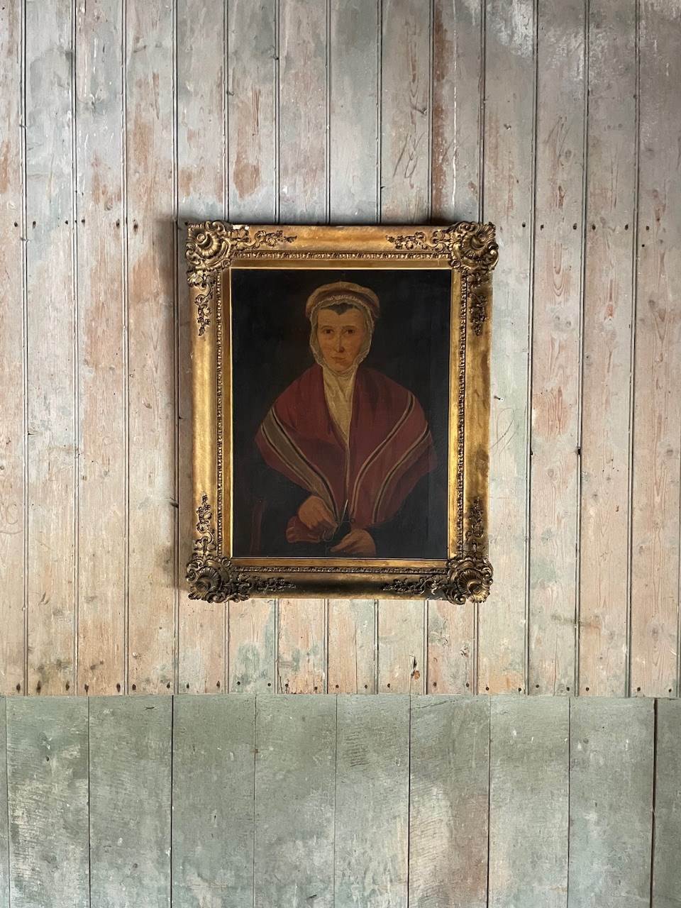 Oil on canvas, in its original, slightly distressed, gilded frame.