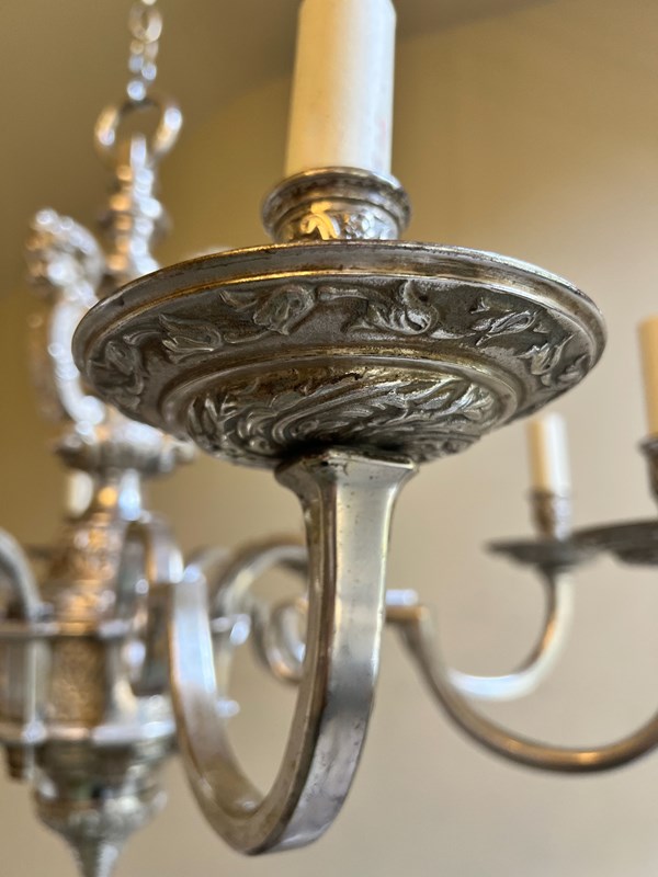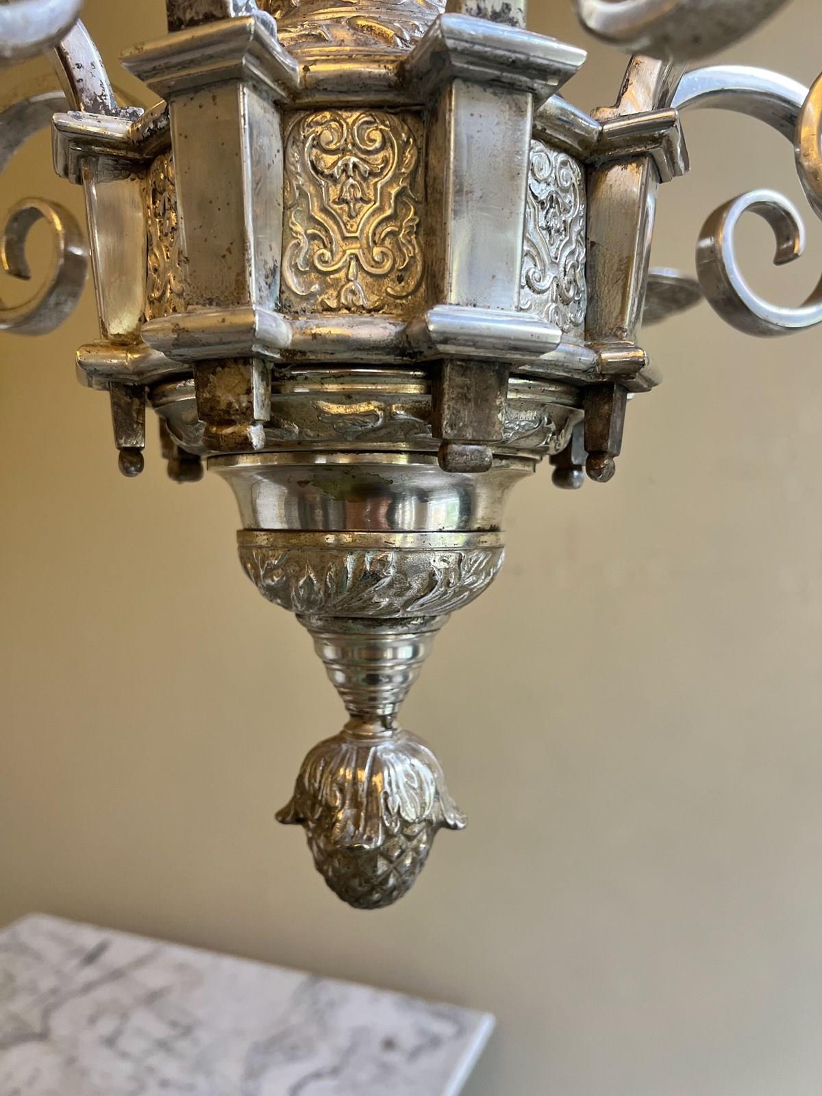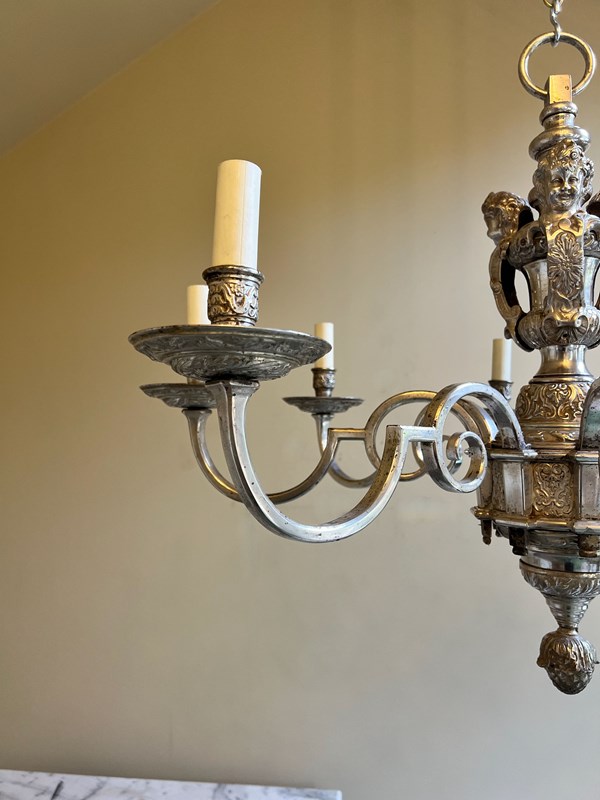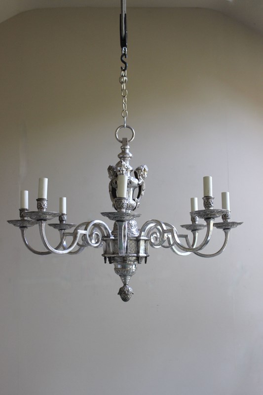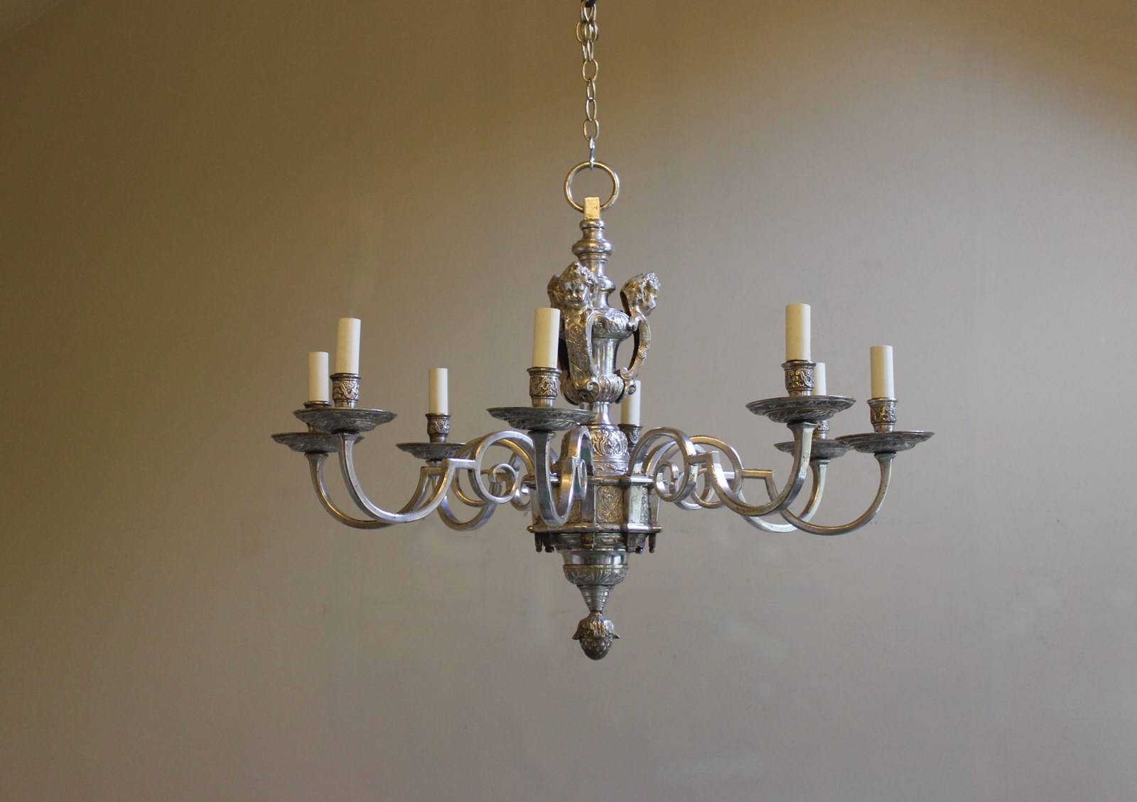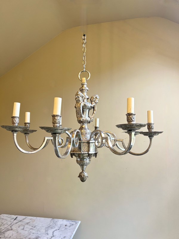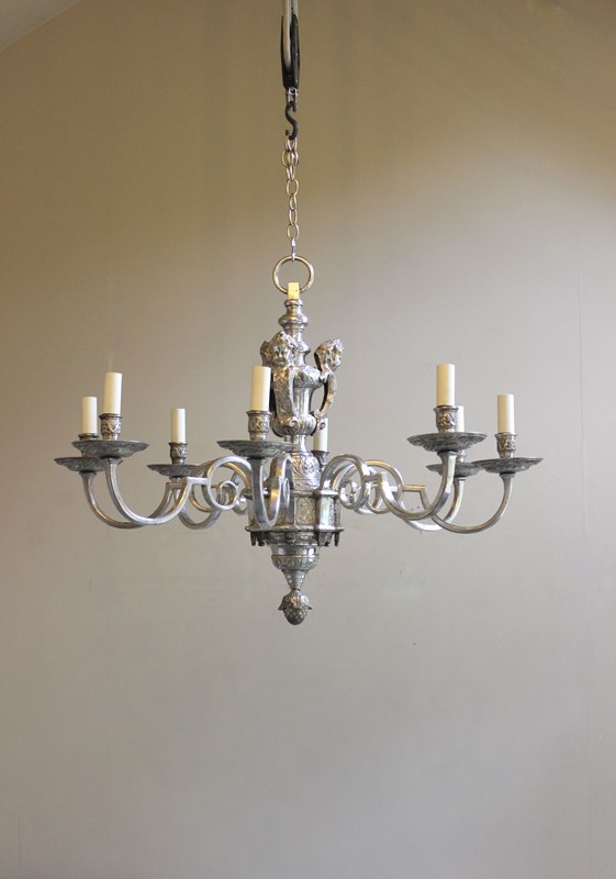 Elegant silvered bronze chandelier probably early 20th C in the manner of Andre Charles Boulle French maker 1642-1732