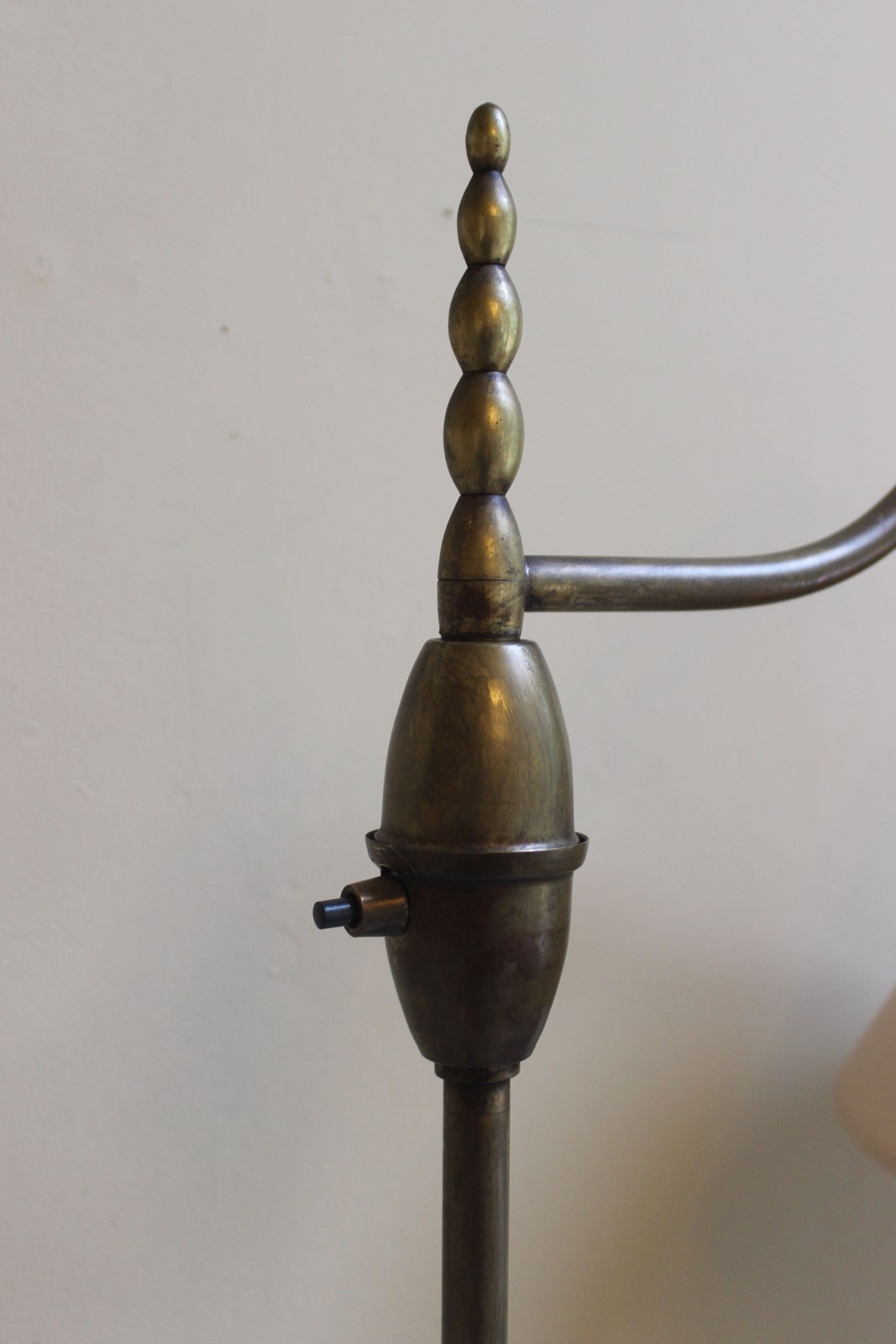 French middle 20th C reading lamp with original on/off switch and custom made taupe silk shade - identical to stock no 7913340