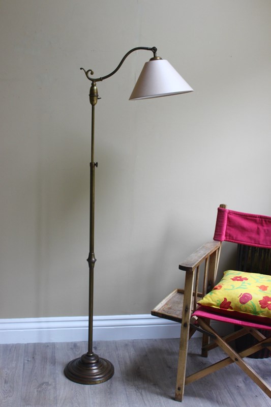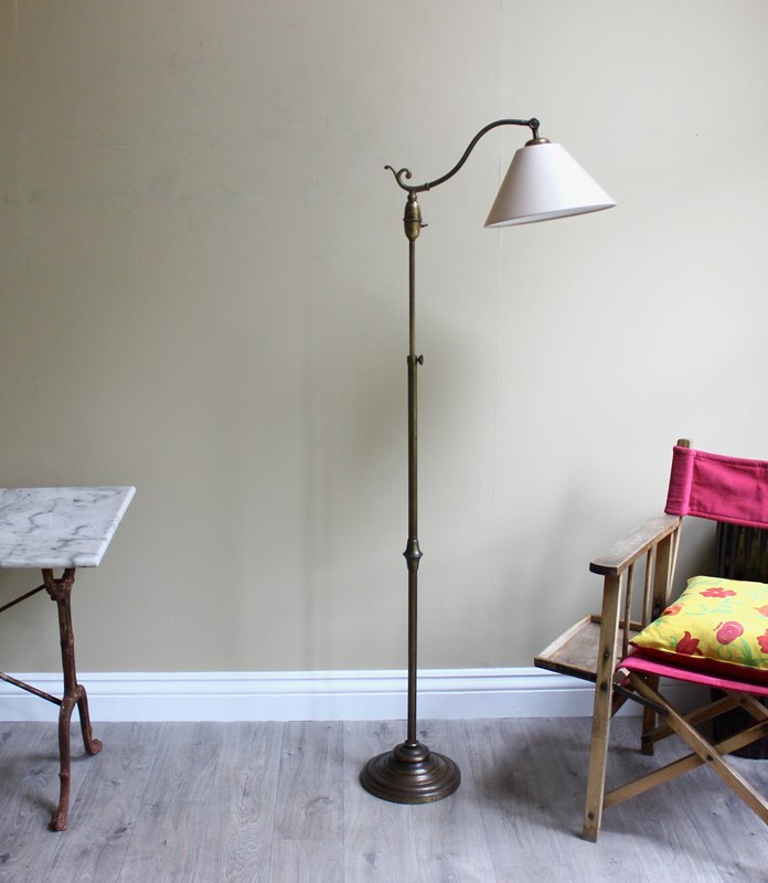 French Early 20Th C Brass Floor Lamp With Adjustable Height