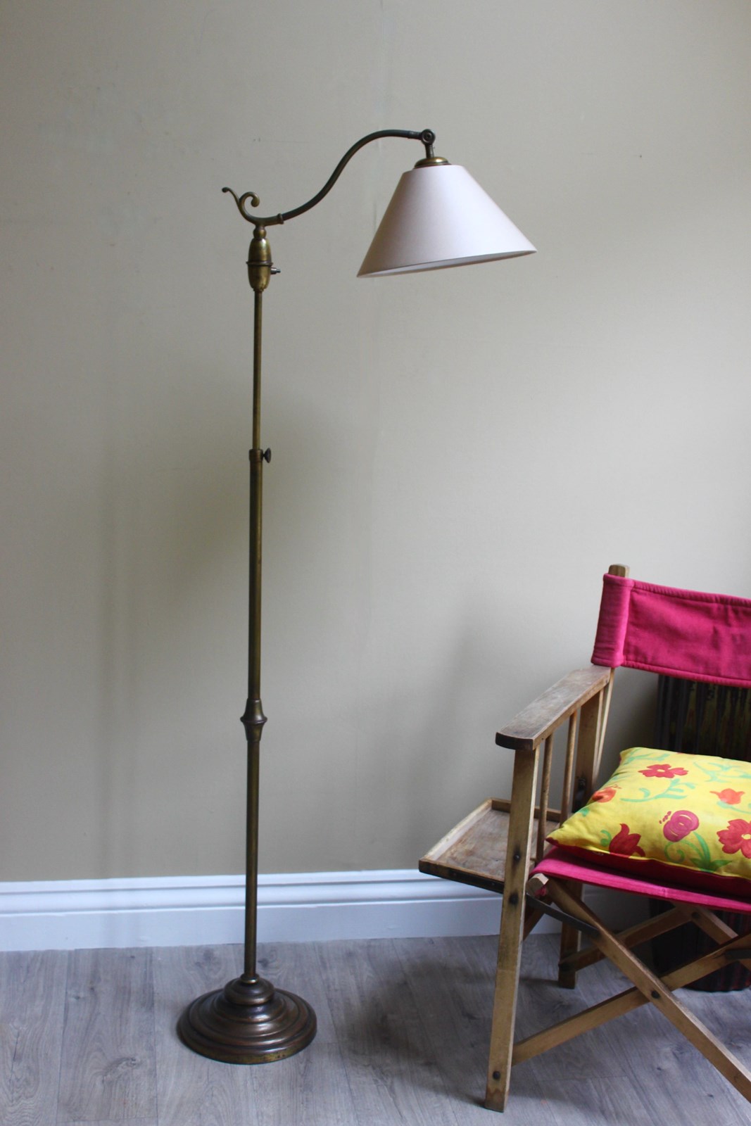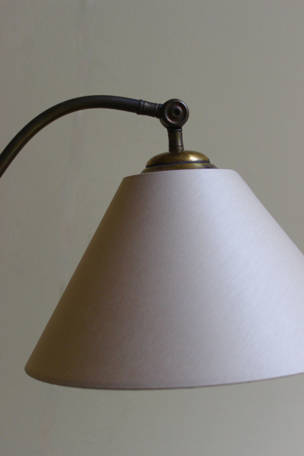 French middle 20th C reading lamp with original on/off switch and custom made taupe silk shade - similar to stock no 7193340