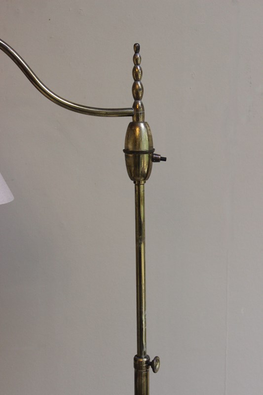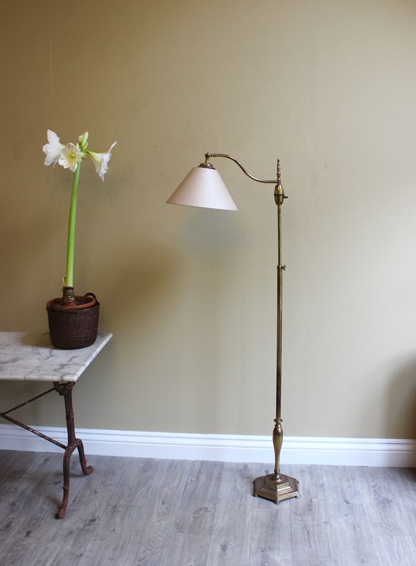 French art deco style brass floor lamp with adjustable height positions from 160 cms down to 130 cms for reading by a chair or sofa