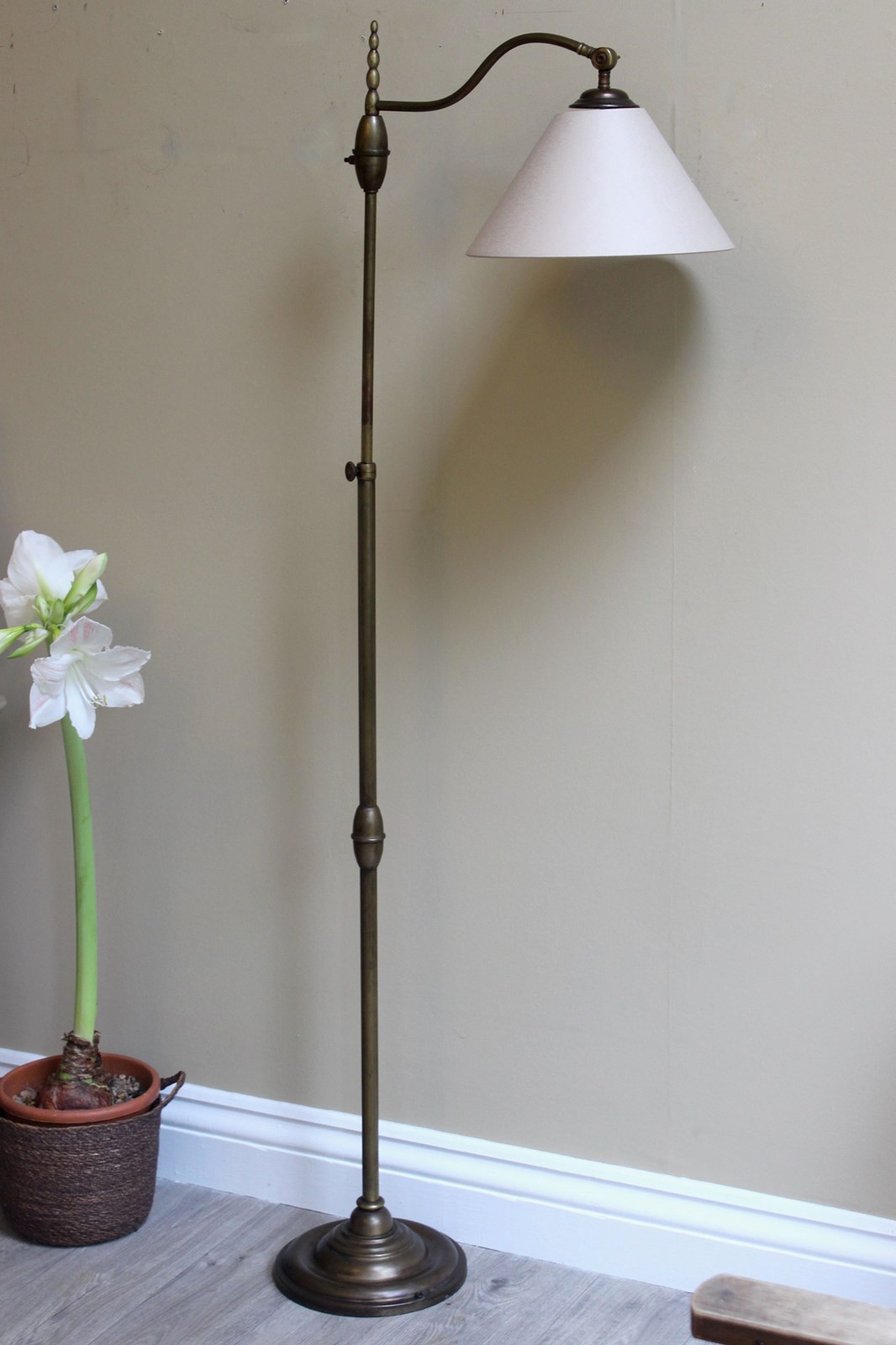Height adjustment is from 160 cms down to approx 130 cms and the shades have adjustable positions for reading - perfect for beside a chair orsofa or in a library